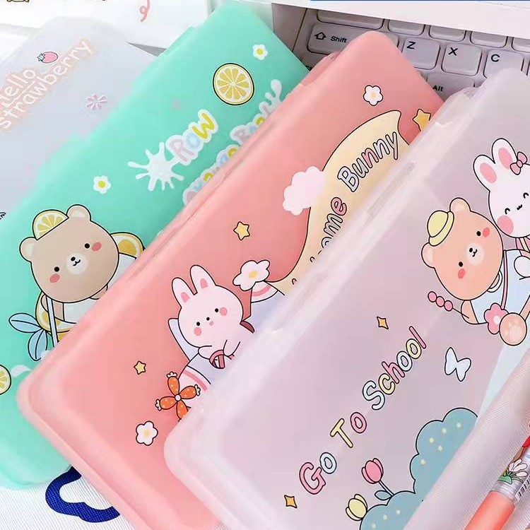 이중층 문구함 심플하고 귀여운 DIY 대용량 다기능 펜케이스 투명 무광 연필케이스 도매 선물상자스토어 가기