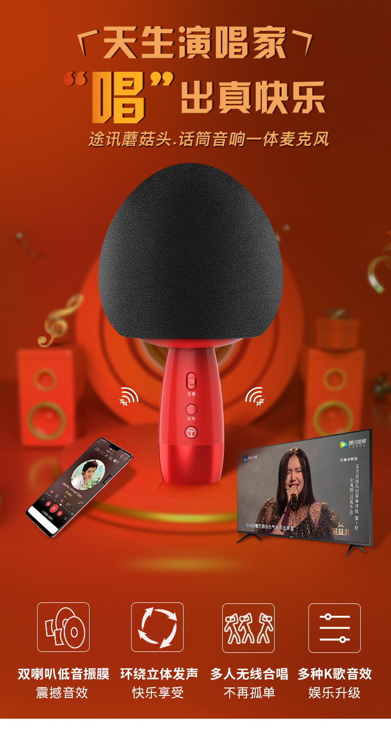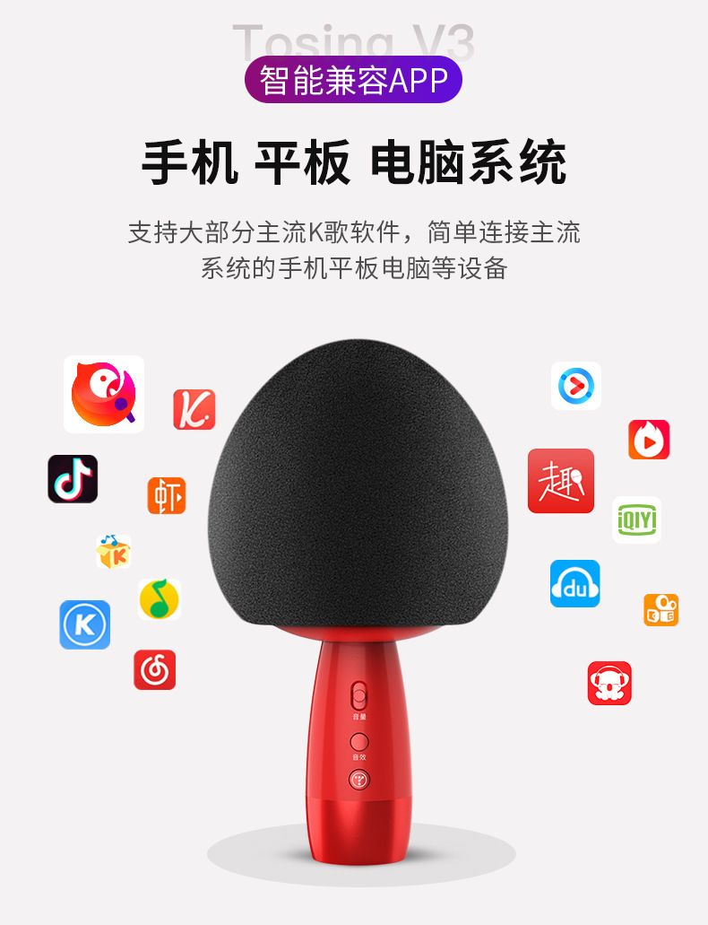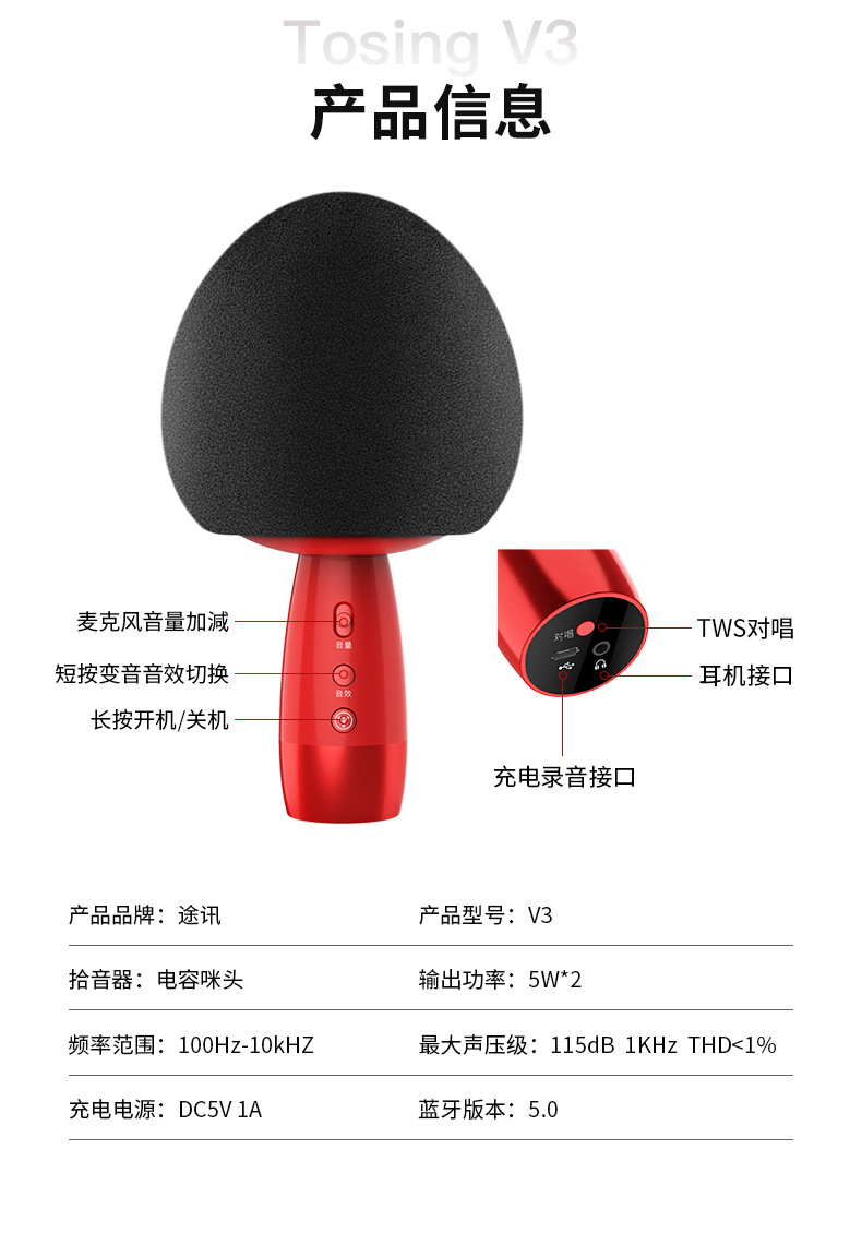 투쉰 V3 해외 인기 무선 마이크 가정용 휴대폰 블루투스 라이브 방송 노래방 오디오 일체형 마이크