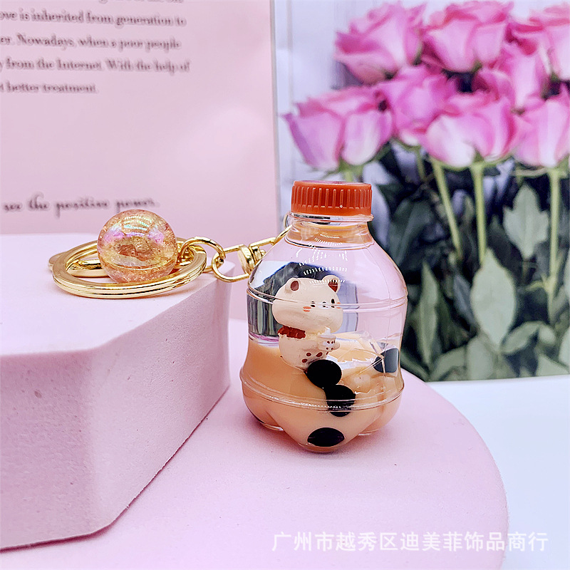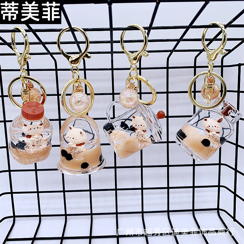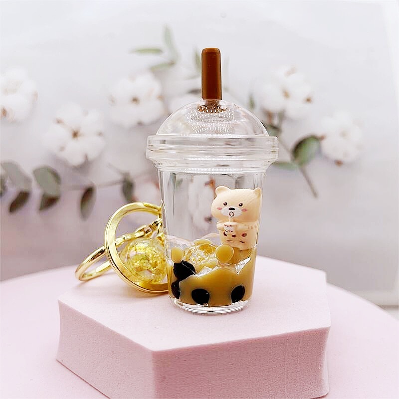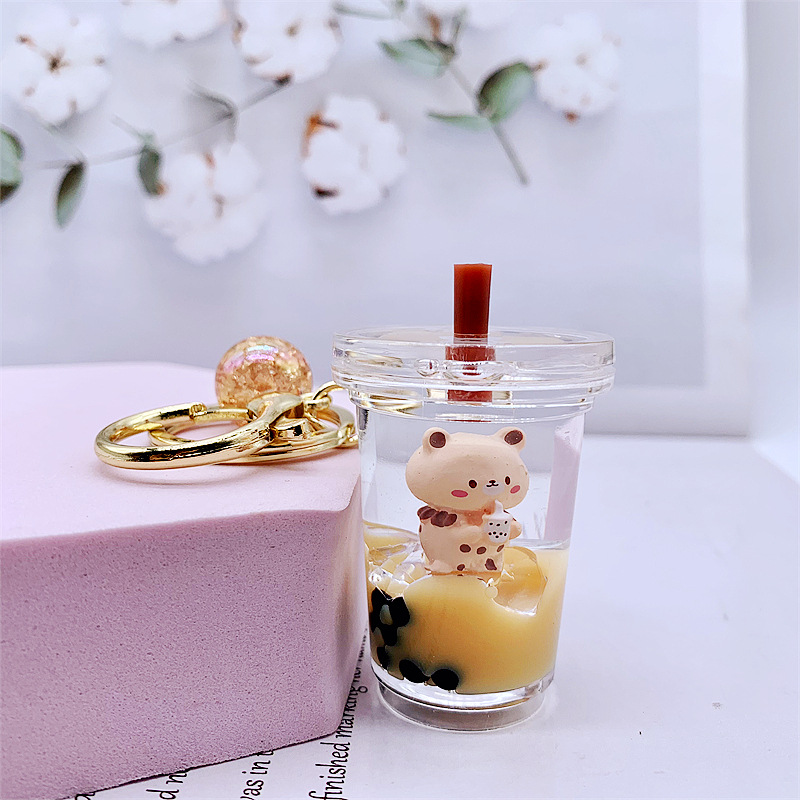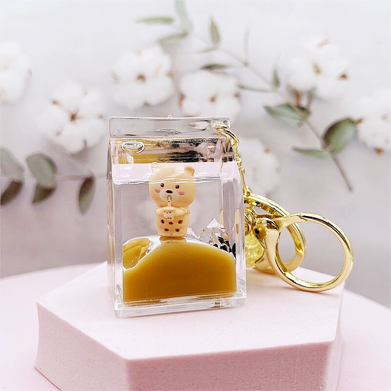 아크릴 오일 밀크티 곰 키체인, 패셔너블한 자동차 키 펜던트, 귀여운 가방 장식품, 선물용 귀여운 액세서리