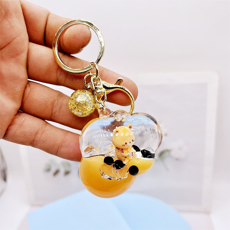 아크릴 오일 밀크티 곰 키체인, 패셔너블한 자동차 키 펜던트, 귀여운 가방 장식품, 선물용 귀여운 액세서리스토어 가기