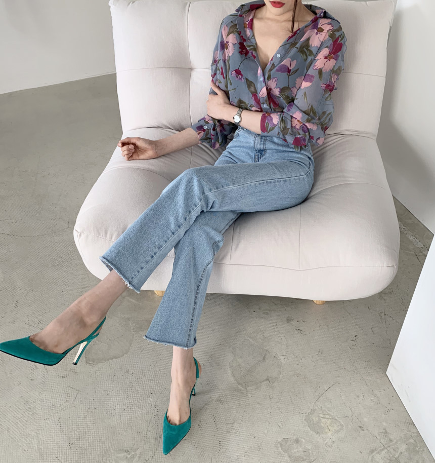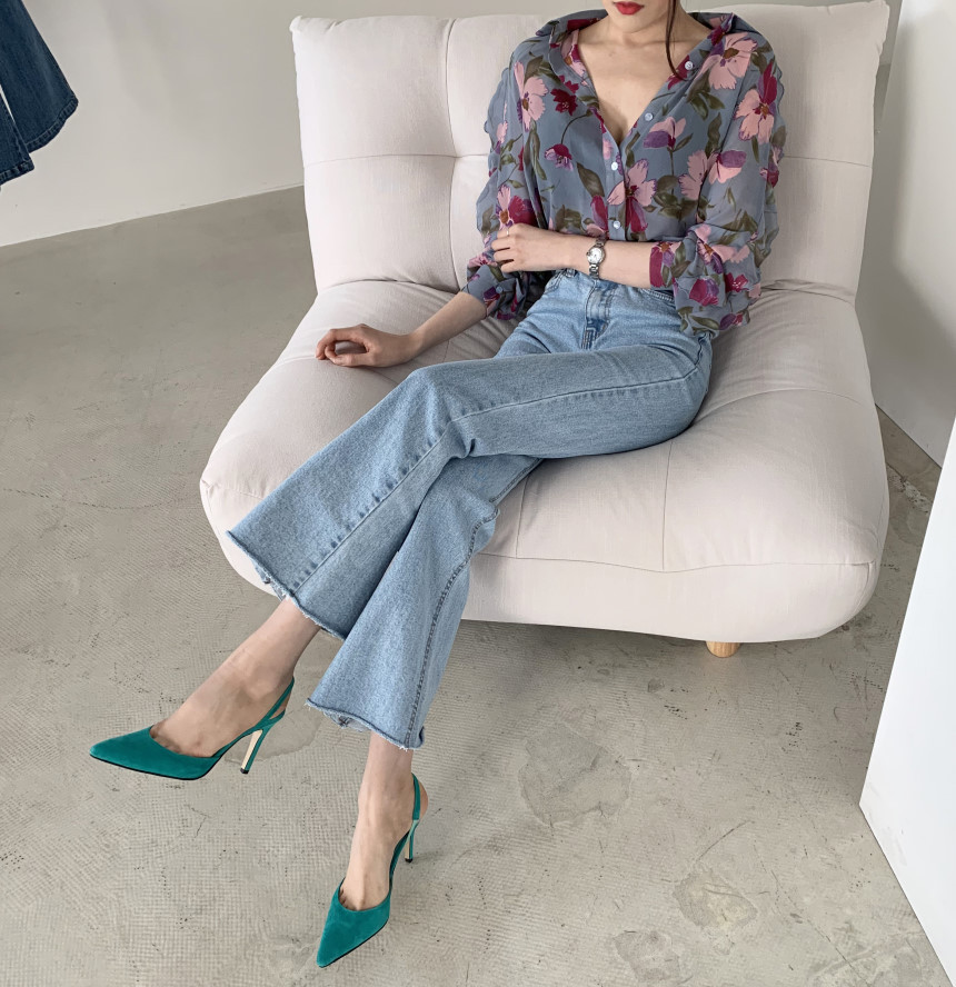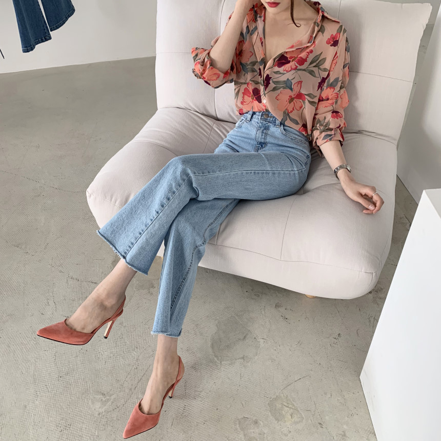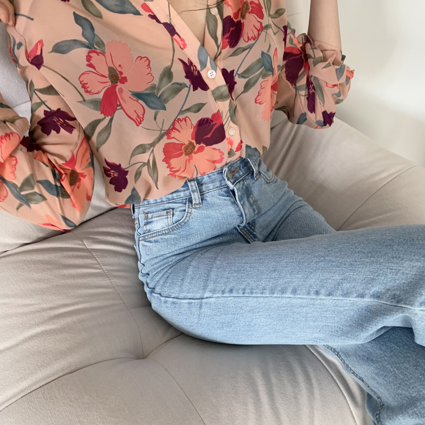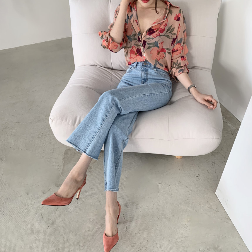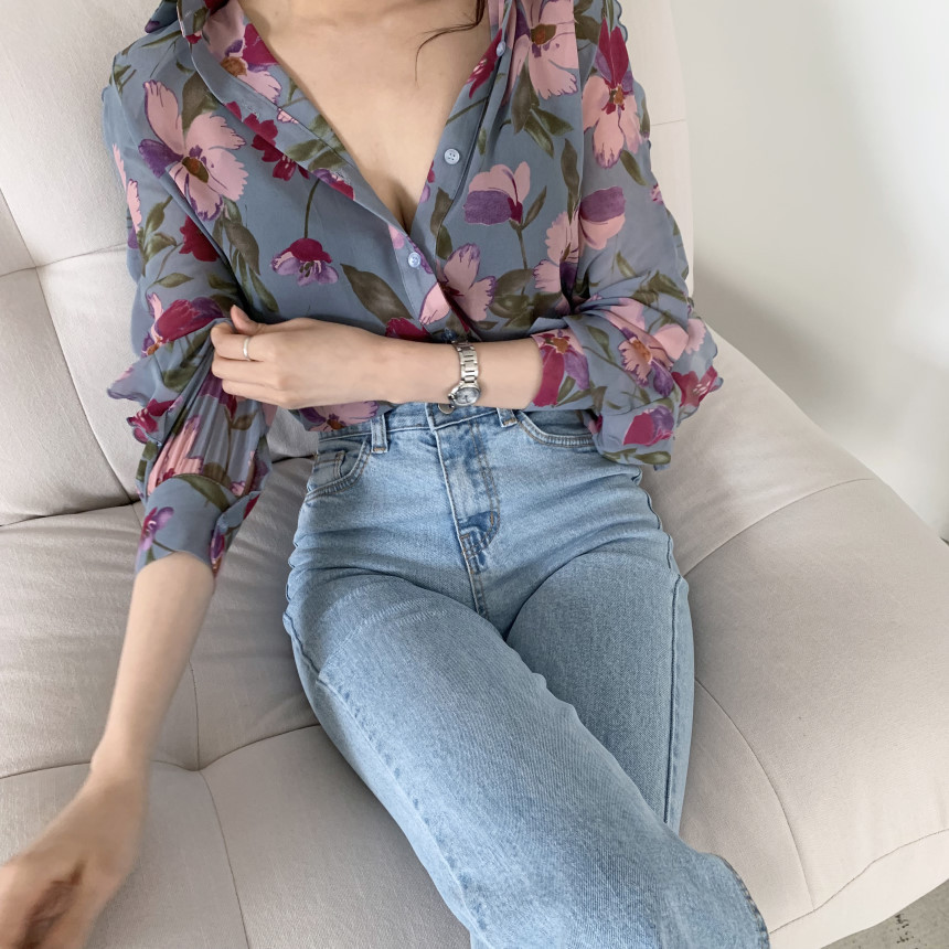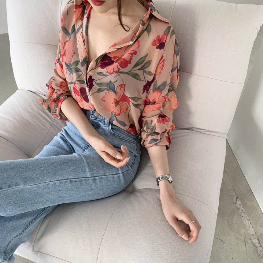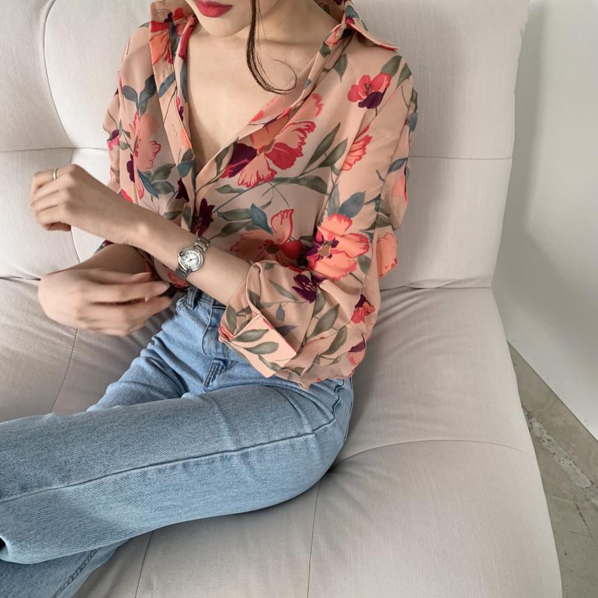 가벼운 럭셔리 꽃 쉬폰 여성의 2022 년 봄과 여름 얇은 슬림 핏 간단한 서양식 긴팔 디자인 셔츠스토어 가기