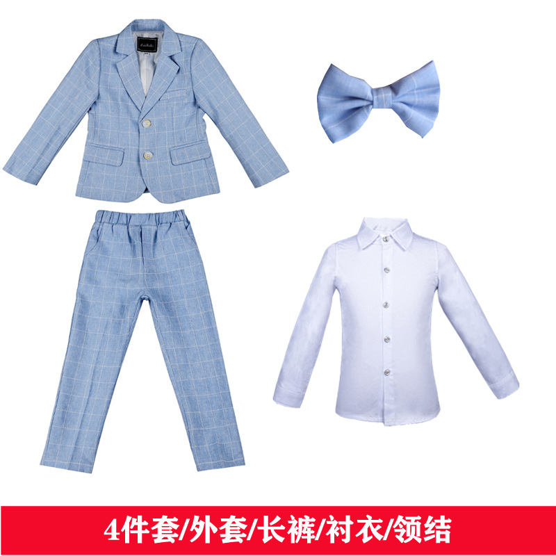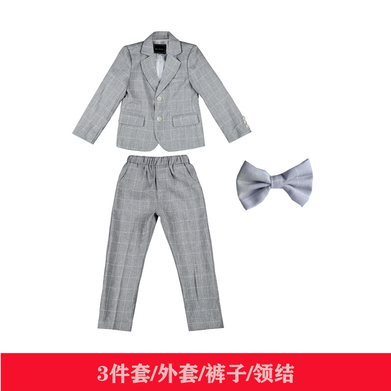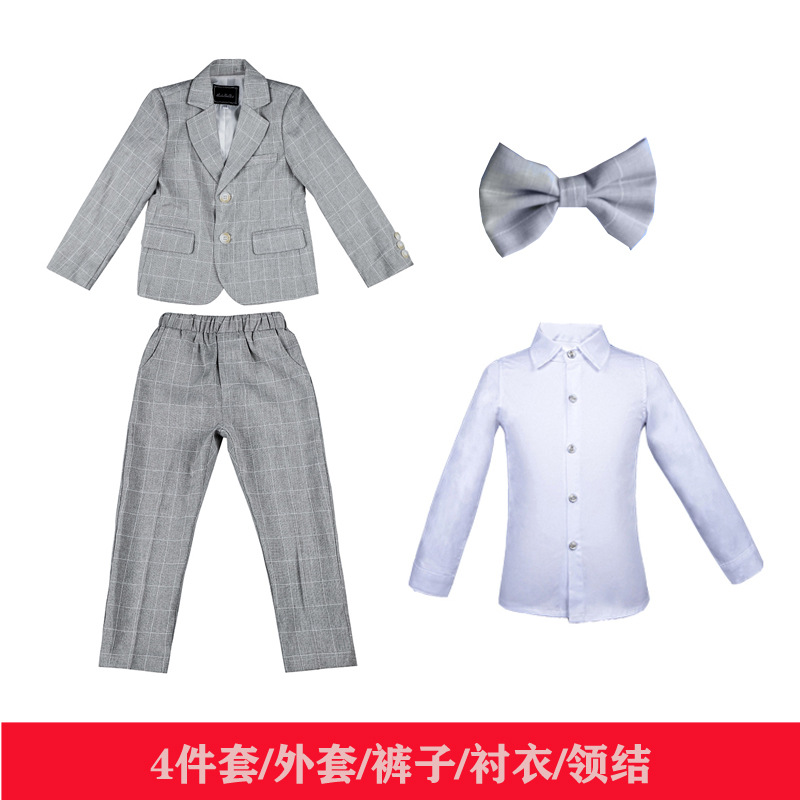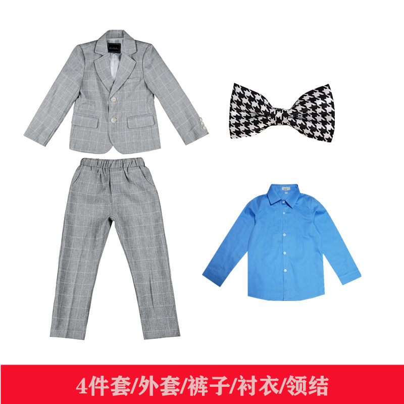 • 회색 4 종 세트 (코트 + 바지 + 블루 셔츠 + 하운드투스 나비 넥타이