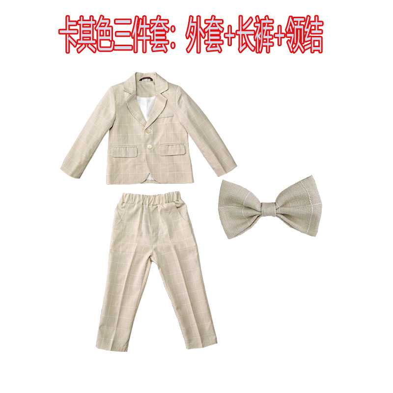 • 카키 쓰리피스 세트 (재킷 + 바지 + 나비 넥타이)