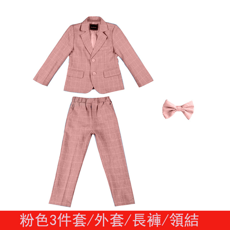 • 핑크 쓰리피스 세트 (코트 + 바지 + 나비 넥타이