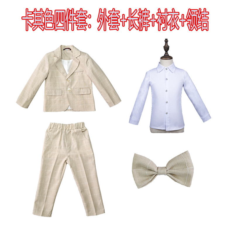 • 카키 4 피스 세트 (재킷 + 바지 + 셔츠 + 나비 넥타이)