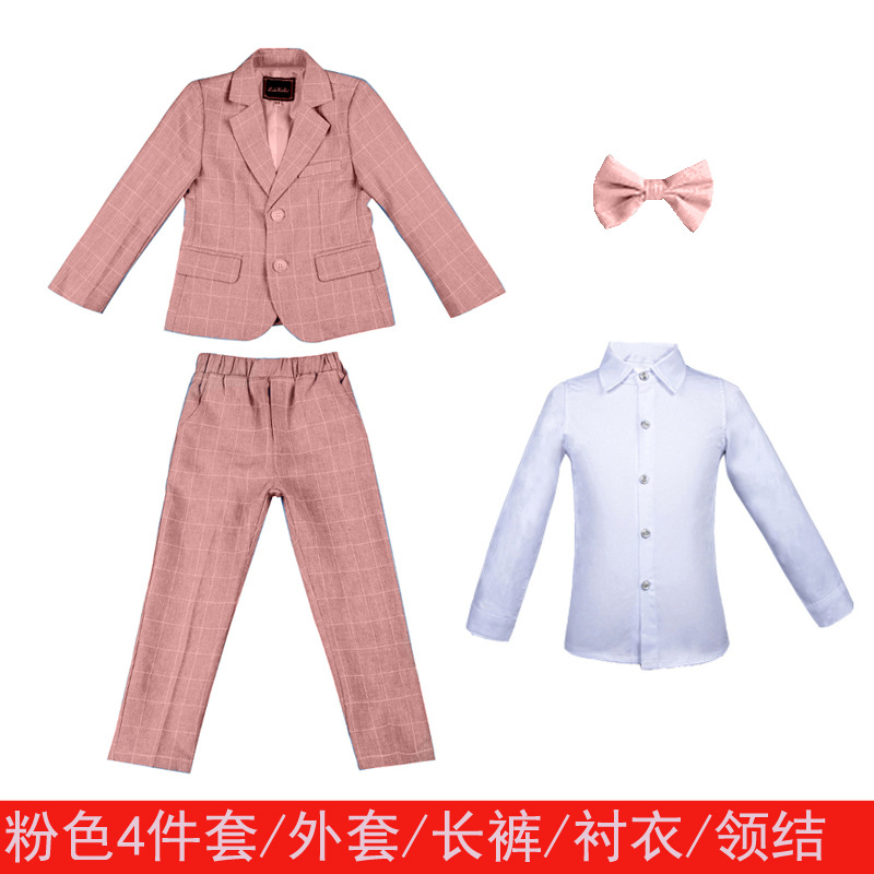 • 핑크 4 피스 세트 (코트 + 바지 + 셔츠 + 나비 넥타이