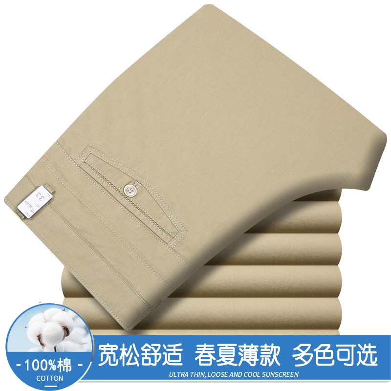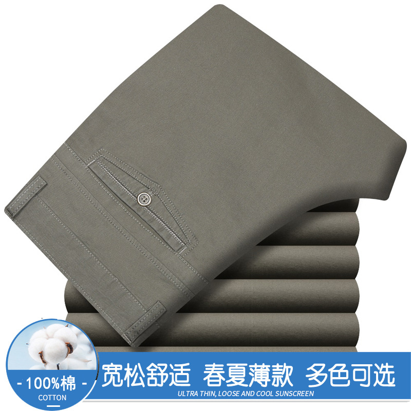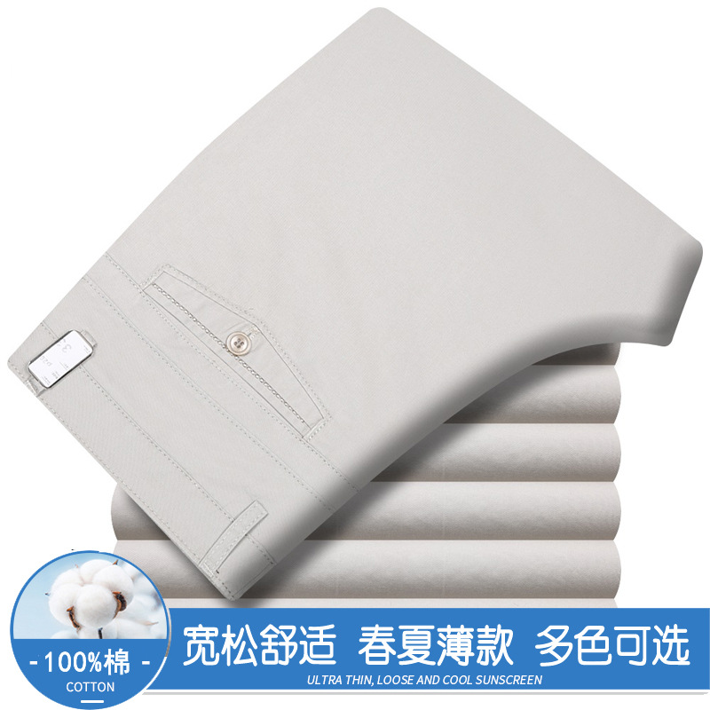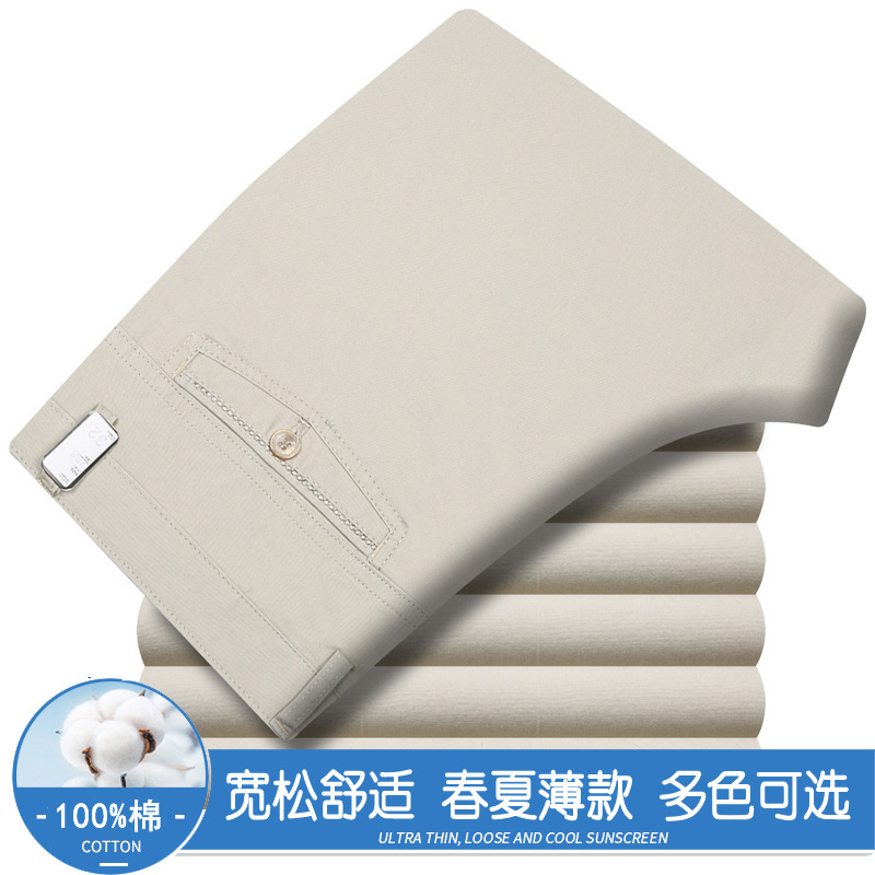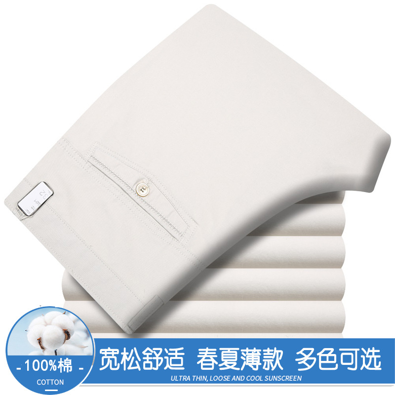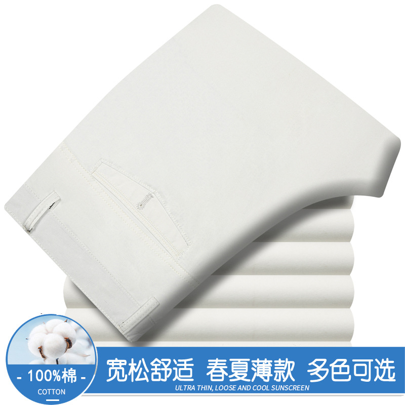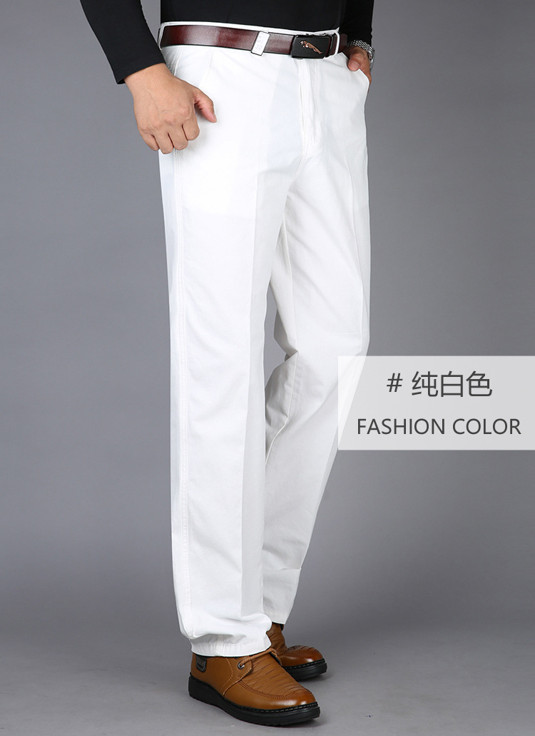 봄과 여름 얇은 순면 캐주얼 바지 남성용 하이 웨이스트 느슨한 중년 남성 바지 퓨어 화이트 아빠 스트레이트 비즈니스 캐주얼 바지스토어 가기