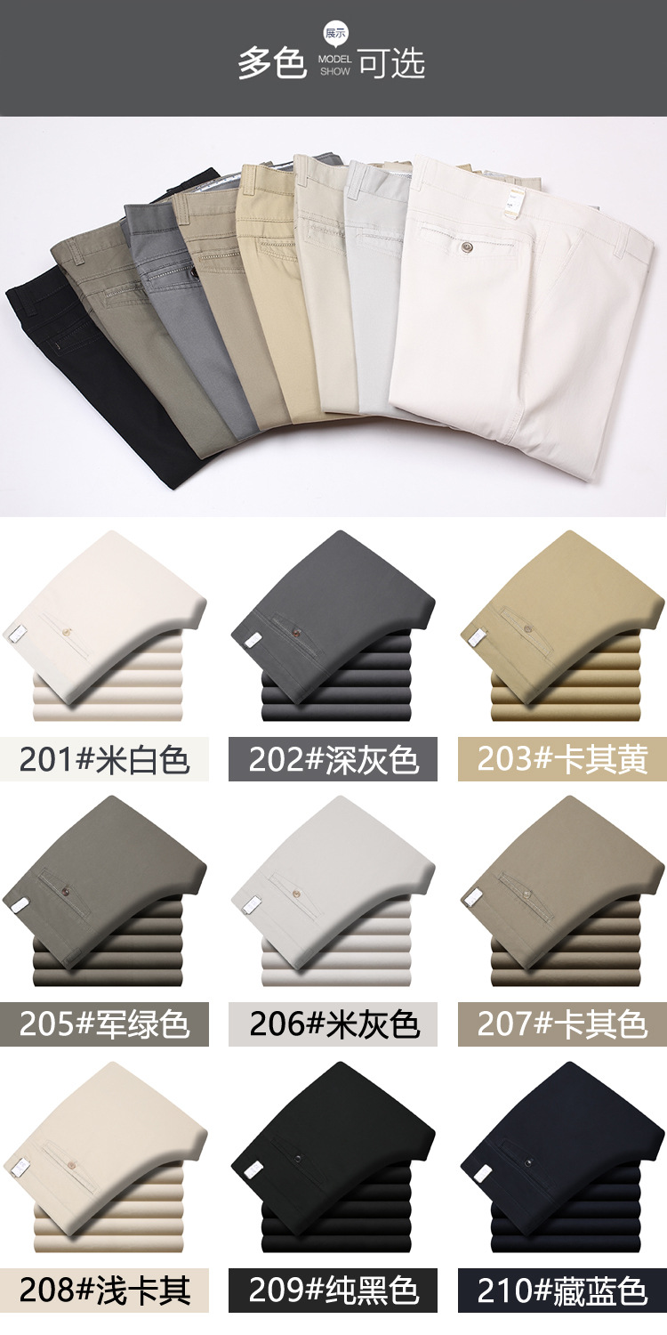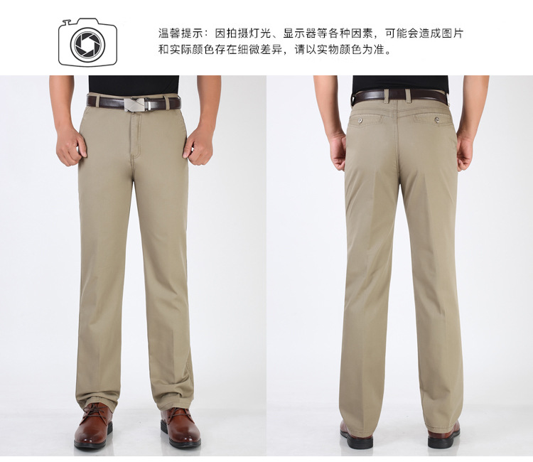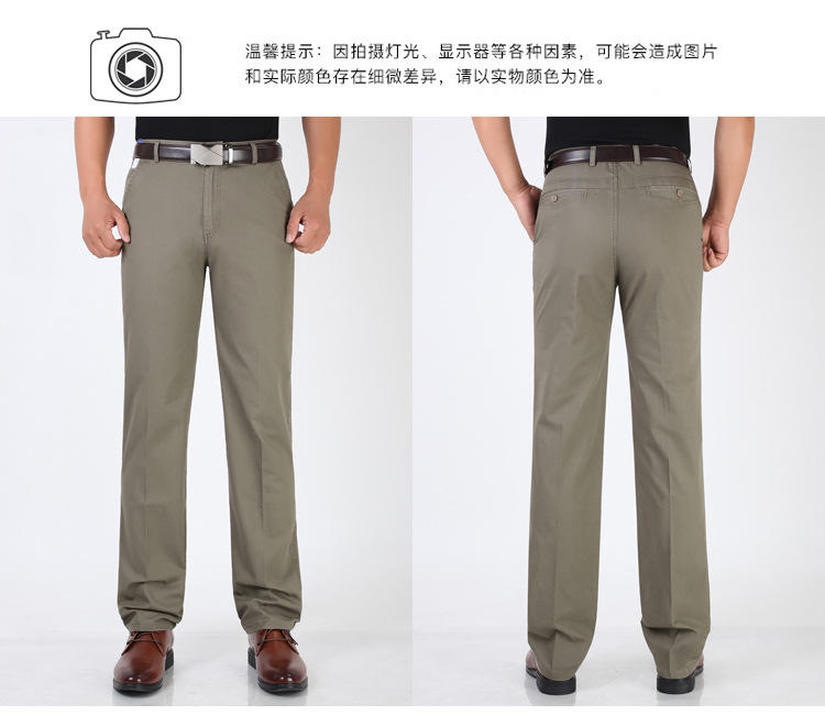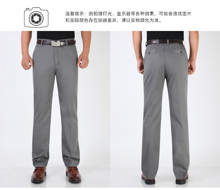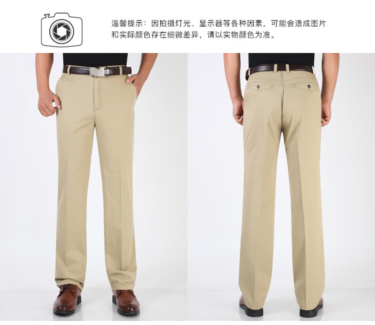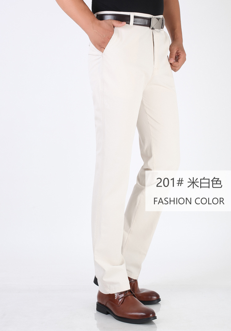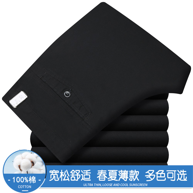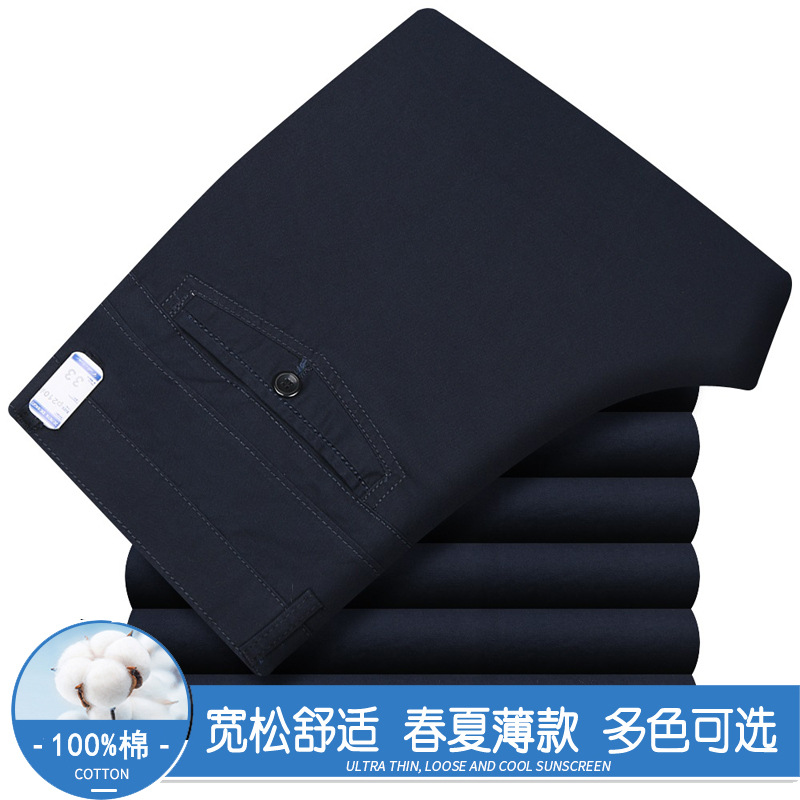 봄과 여름 얇은 순면 캐주얼 바지 남성용 하이 웨이스트 느슨한 중년 남성 바지 퓨어 화이트 아빠 스트레이트 비즈니스 캐주얼 바지스토어 가기