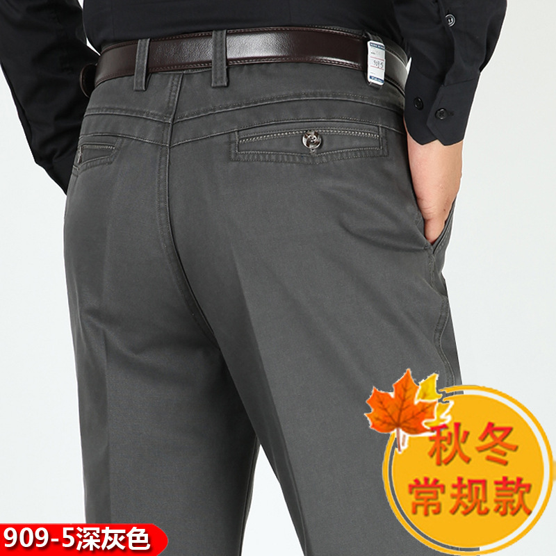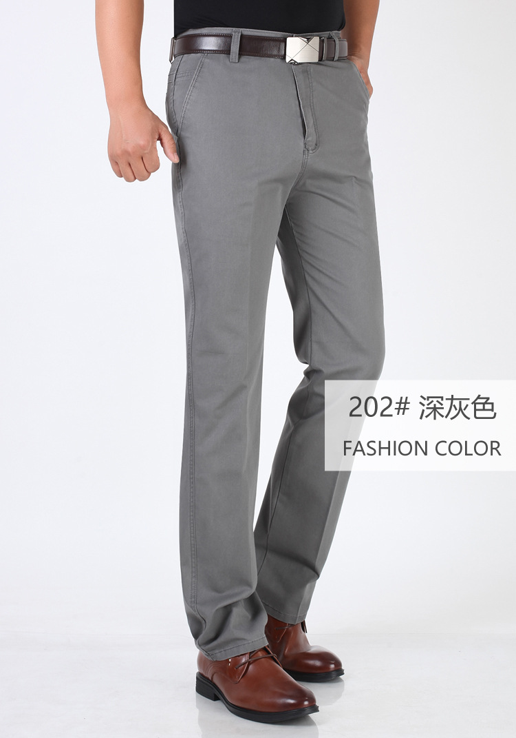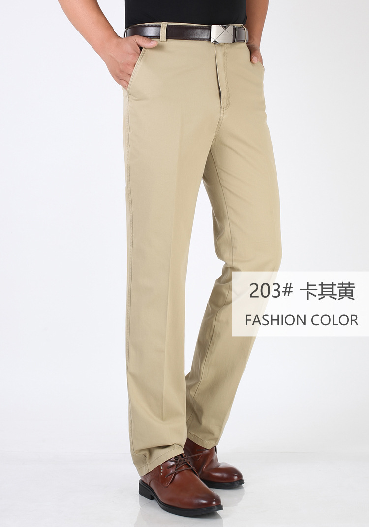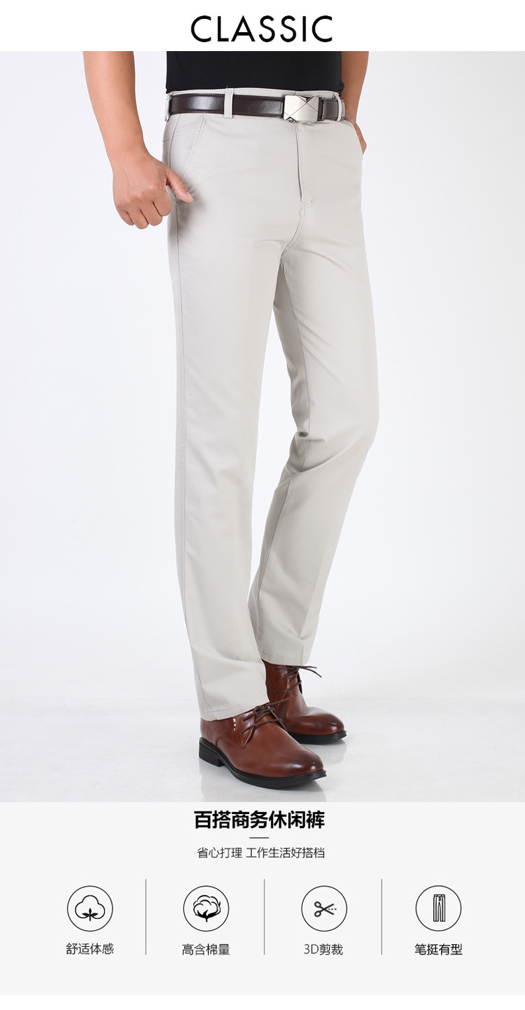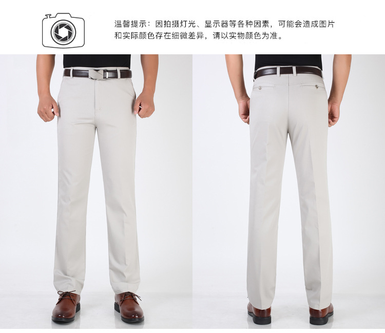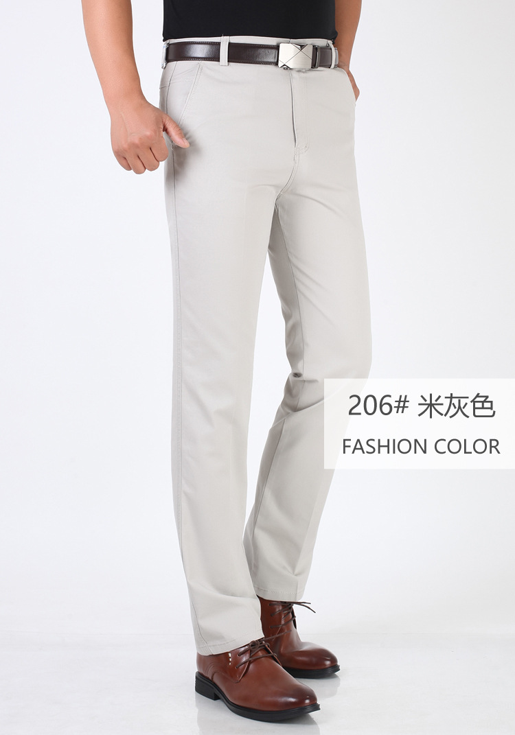 봄과 여름 얇은 순면 캐주얼 바지 남성용 하이 웨이스트 느슨한 중년 남성 바지 퓨어 화이트 아빠 스트레이트 비즈니스 캐주얼 바지스토어 가기