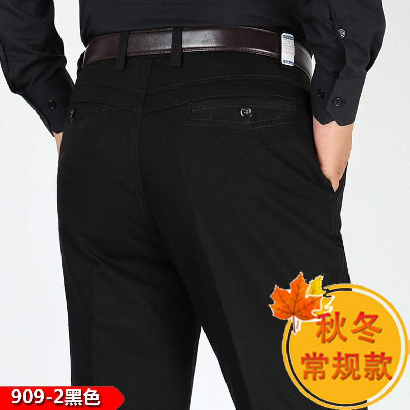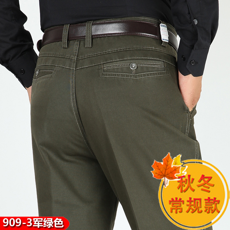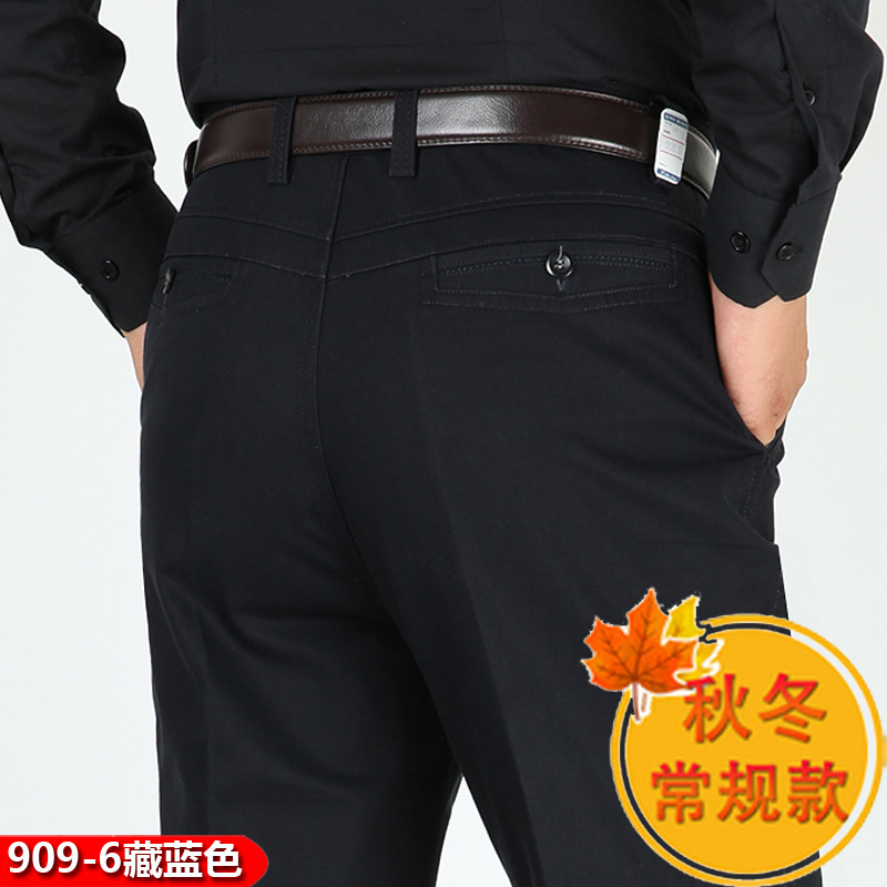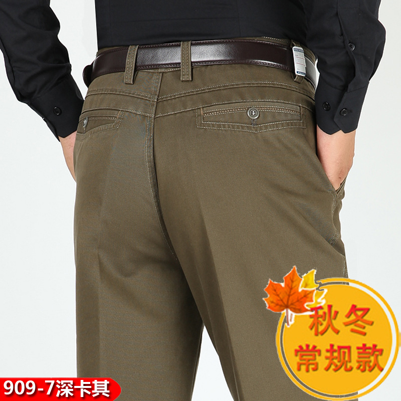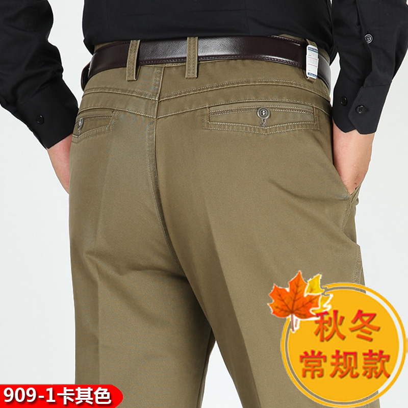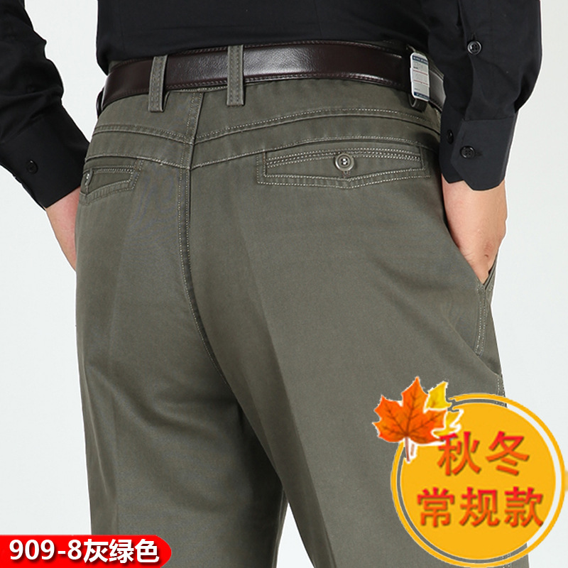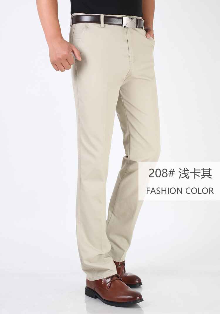 봄과 여름 얇은 순면 캐주얼 바지 남성용 하이 웨이스트 느슨한 중년 남성 바지 퓨어 화이트 아빠 스트레이트 비즈니스 캐주얼 바지스토어 가기