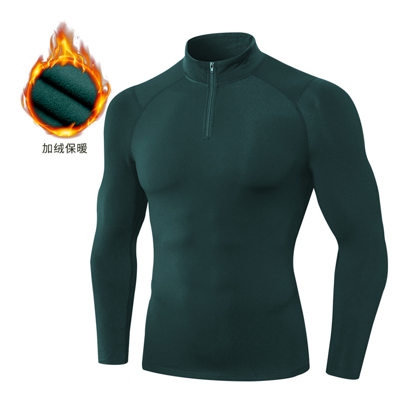 남자의 가을과 겨울 기모 피트니스 의류 높은 탄성 꽉 스포츠 농구 실행 훈련 긴 소매 반 지퍼 칼라 운동복