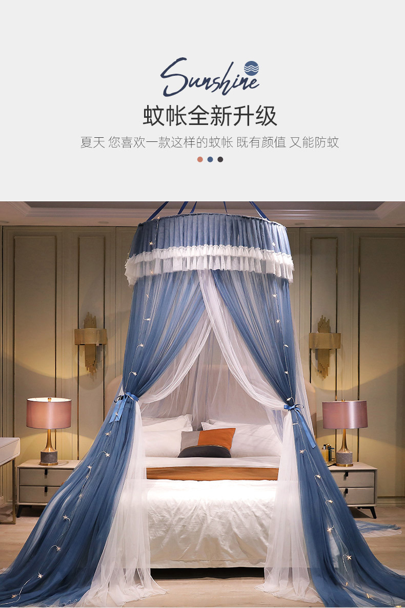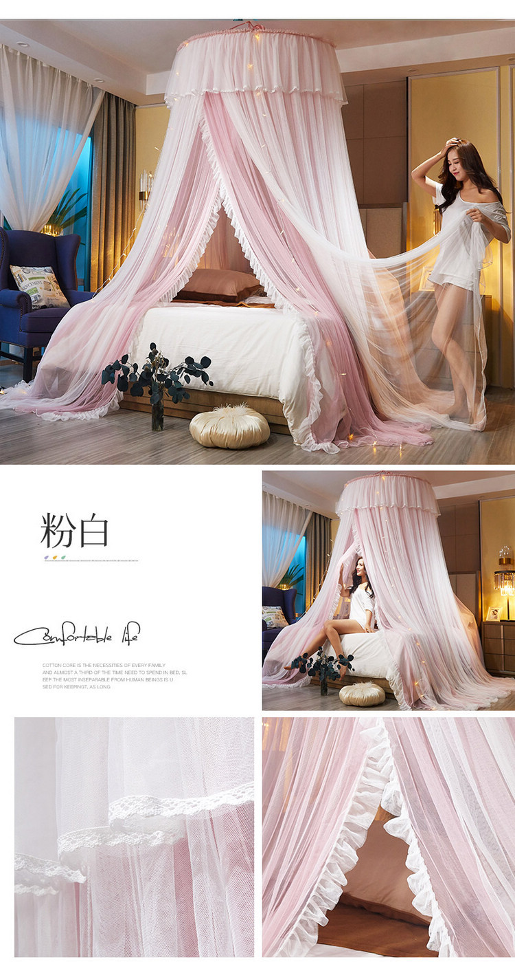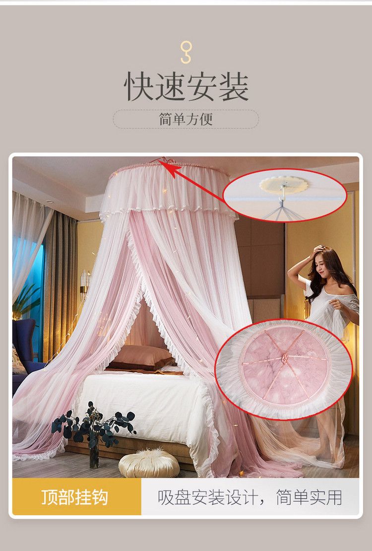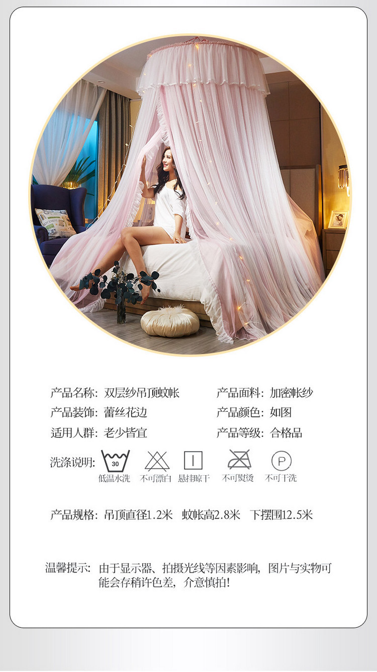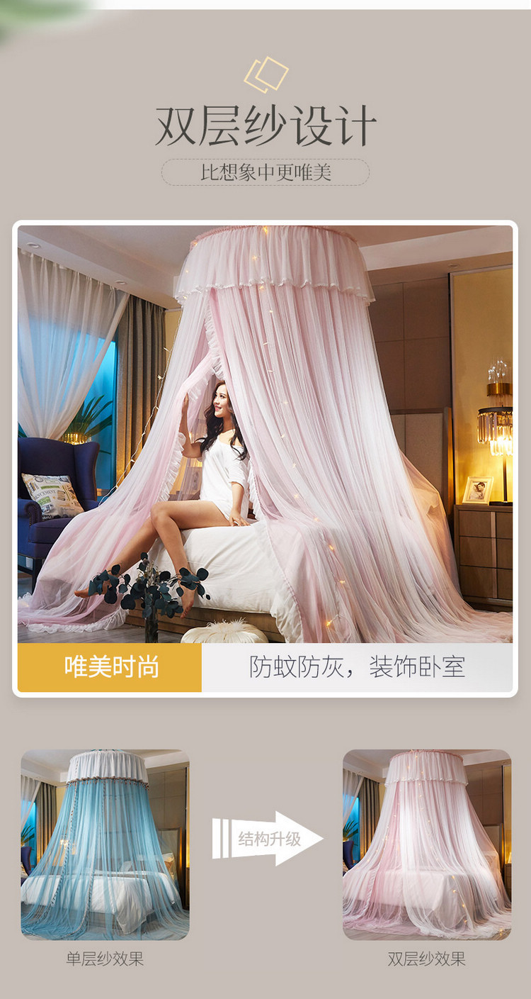이중 거즈 돔 모기장, 설치가 필요 없고 높이가 높은 3개의 개방형 문, 공주 스타일의 가정용 모기 방지 침대 커튼, 천장 모기장스토어 가기