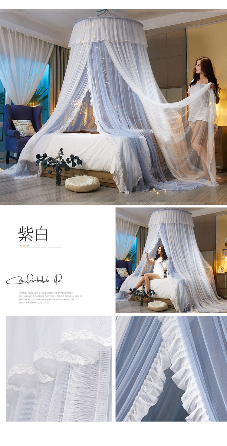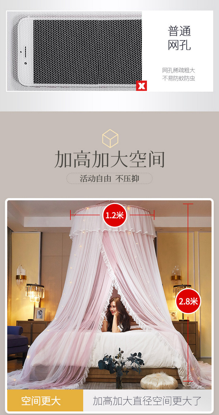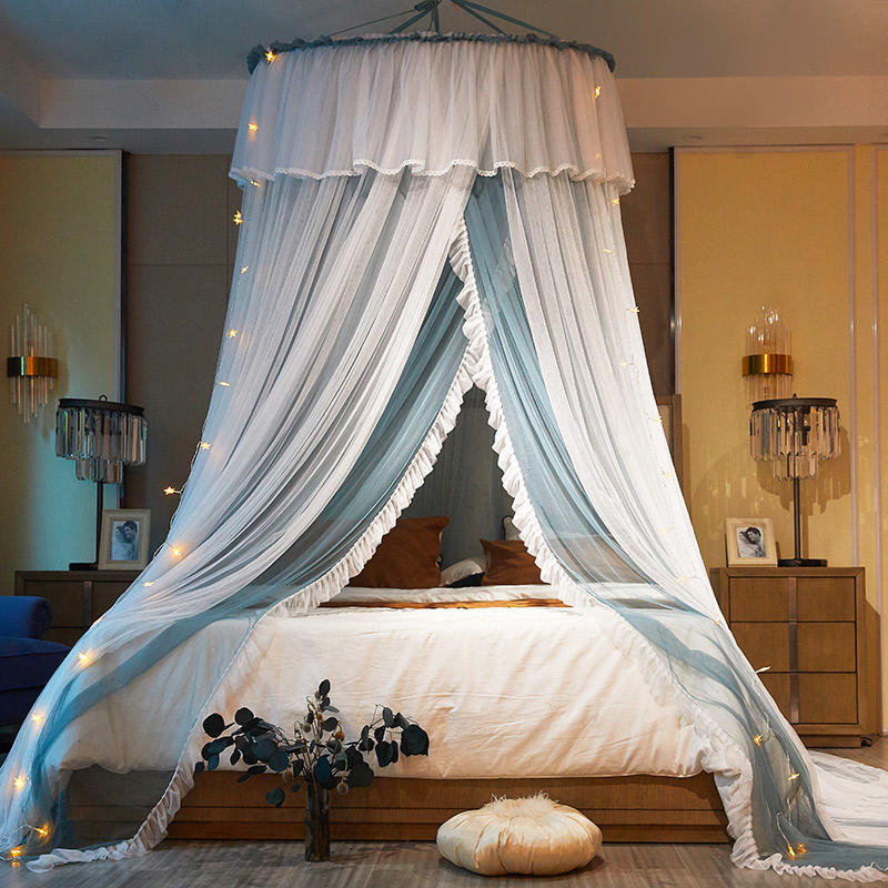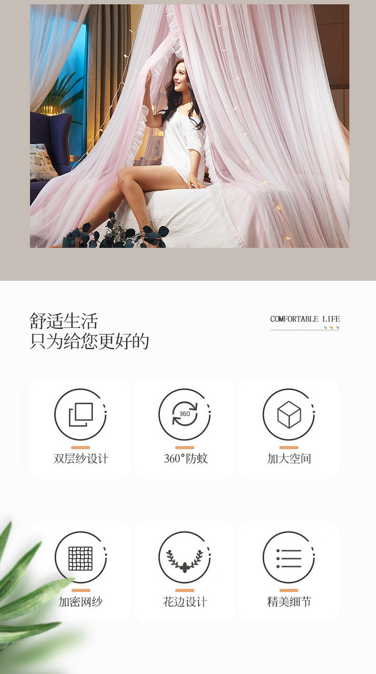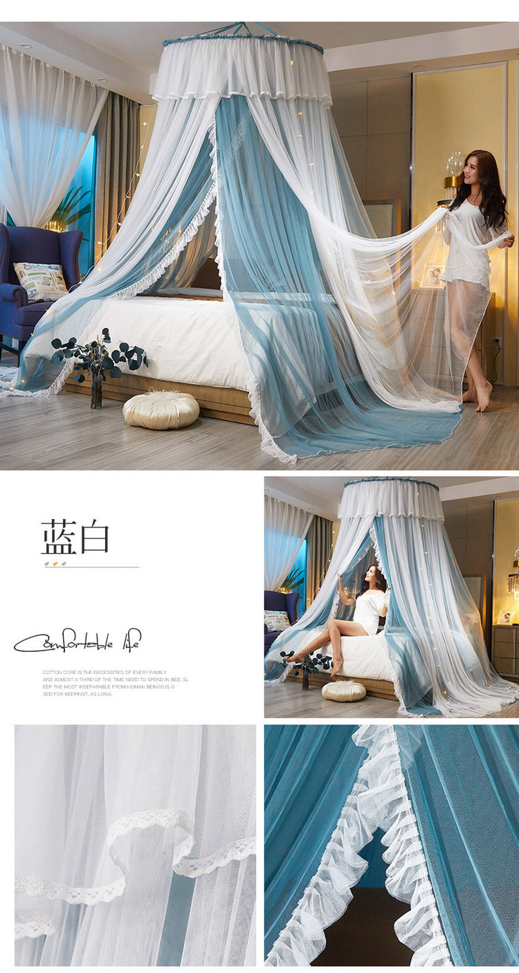 이중 거즈 돔 모기장, 설치가 필요 없고 높이가 높은 3개의 개방형 문, 공주 스타일의 가정용 모기 방지 침대 커튼, 천장 모기장스토어 가기