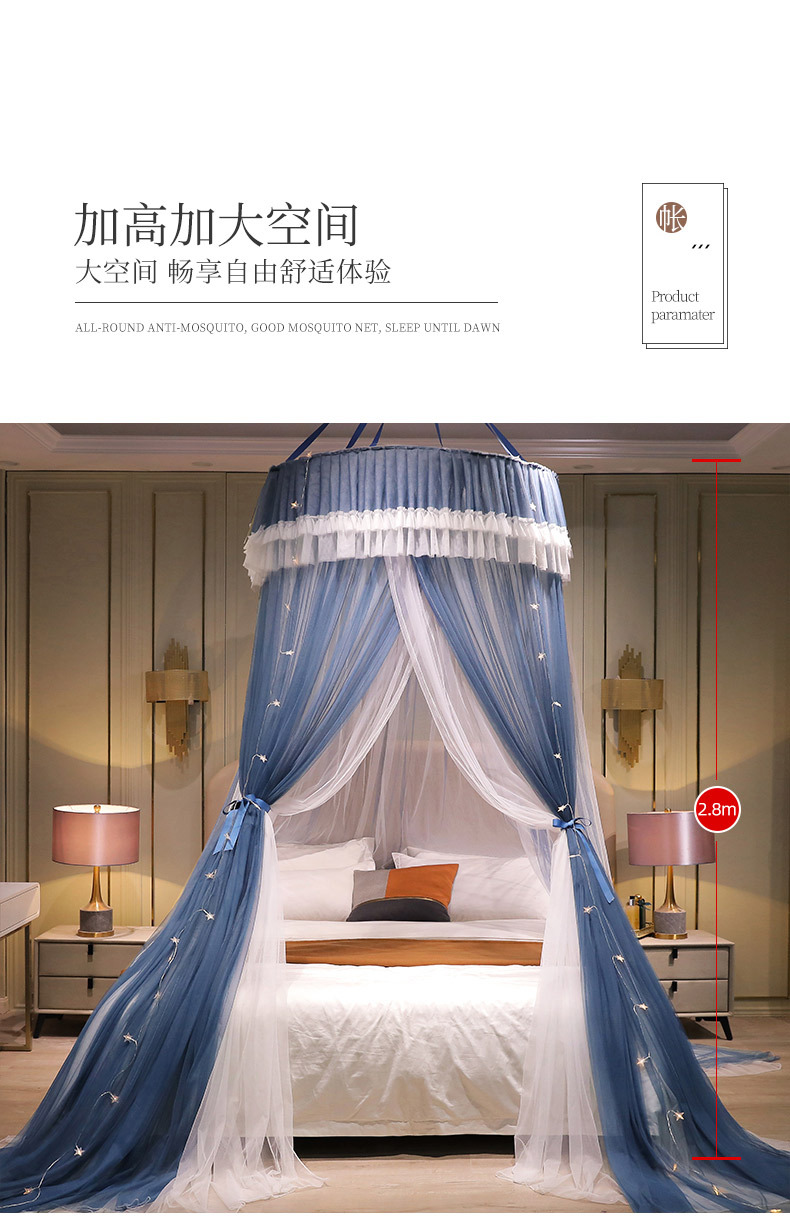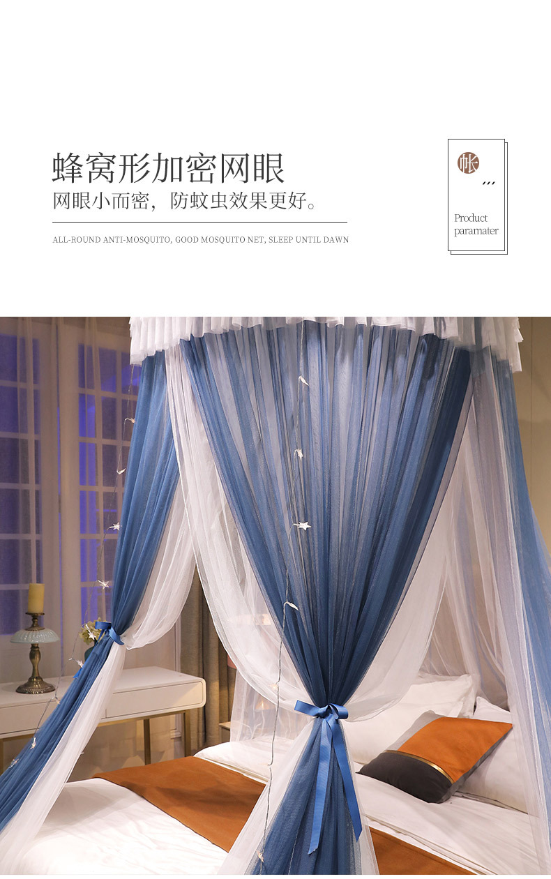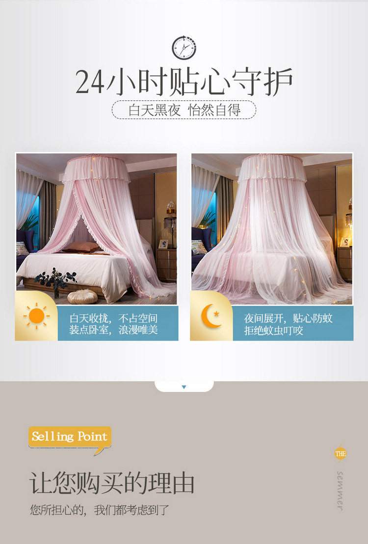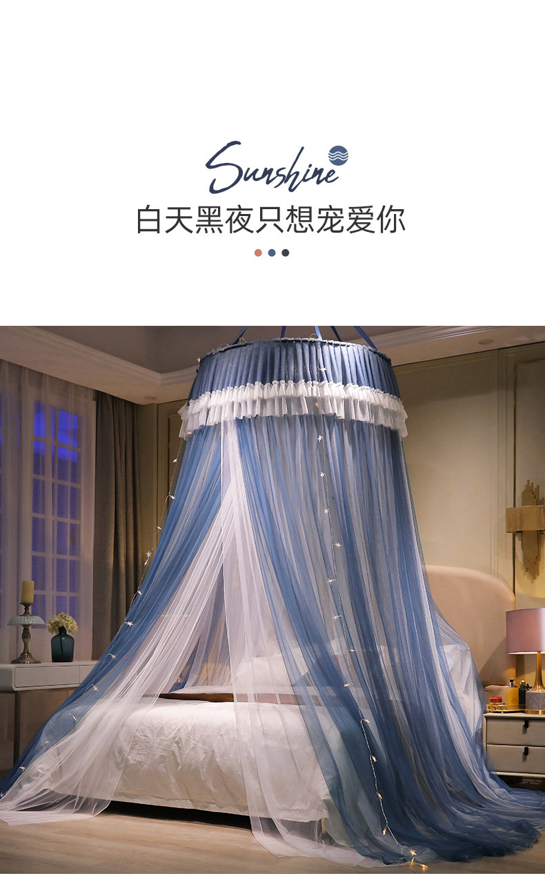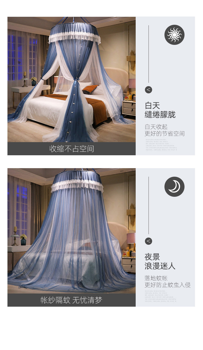 이중 거즈 돔 모기장, 설치가 필요 없고 높이가 높은 3개의 개방형 문, 공주 스타일의 가정용 모기 방지 침대 커튼, 천장 모기장스토어 가기