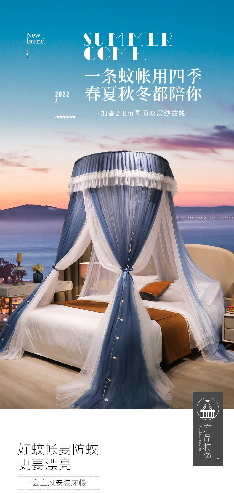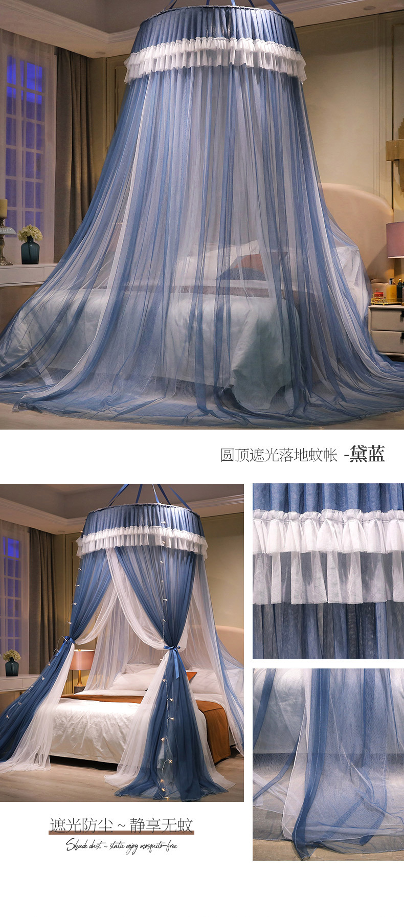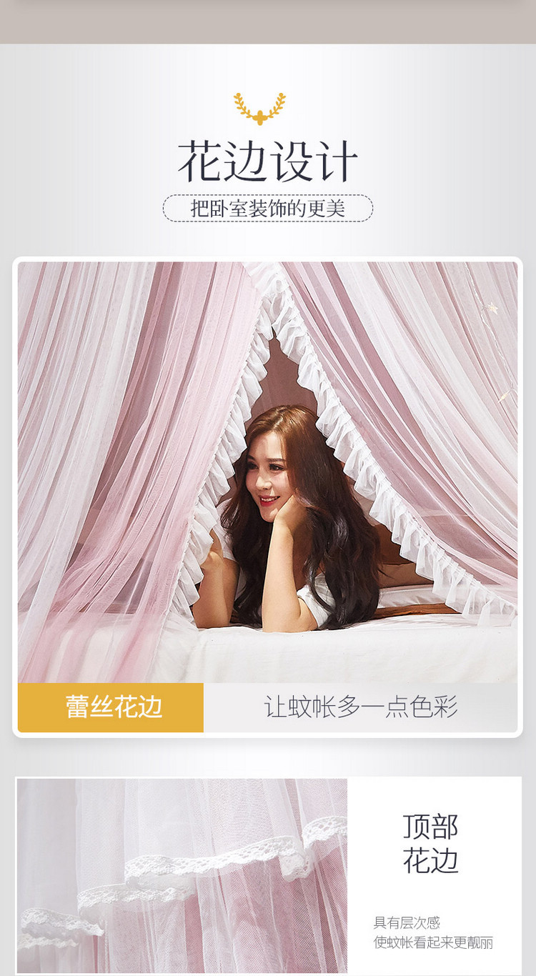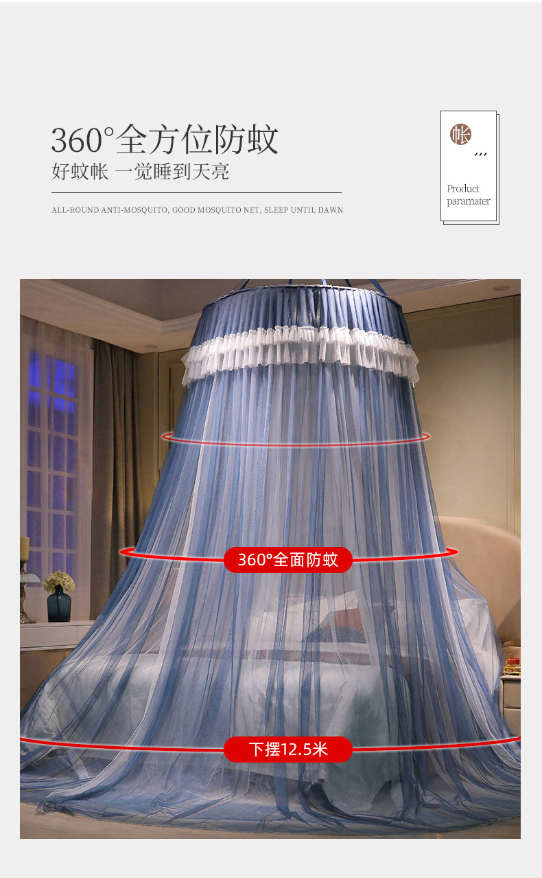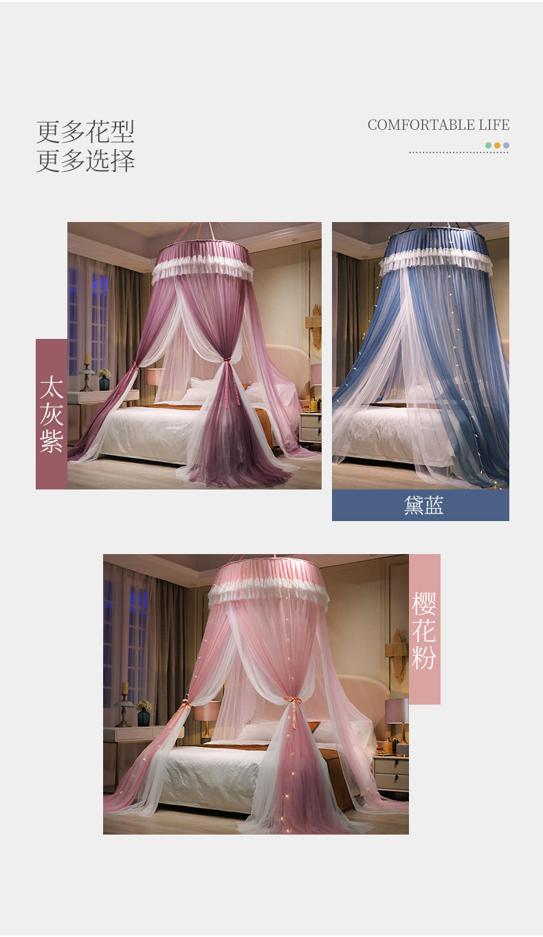 이중 거즈 돔 모기장, 설치가 필요 없고 높이가 높은 3개의 개방형 문, 공주 스타일의 가정용 모기 방지 침대 커튼, 천장 모기장스토어 가기