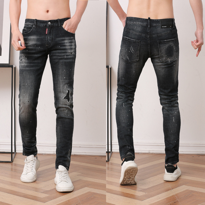 봄 2022 블루 스트레치 워싱 찢어진 레깅스 타이트핏 대학생 패션 부티크 D2 청바지 남성 바지스토어 가기
