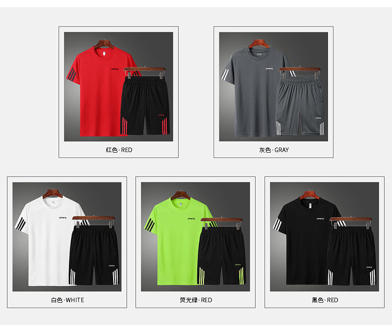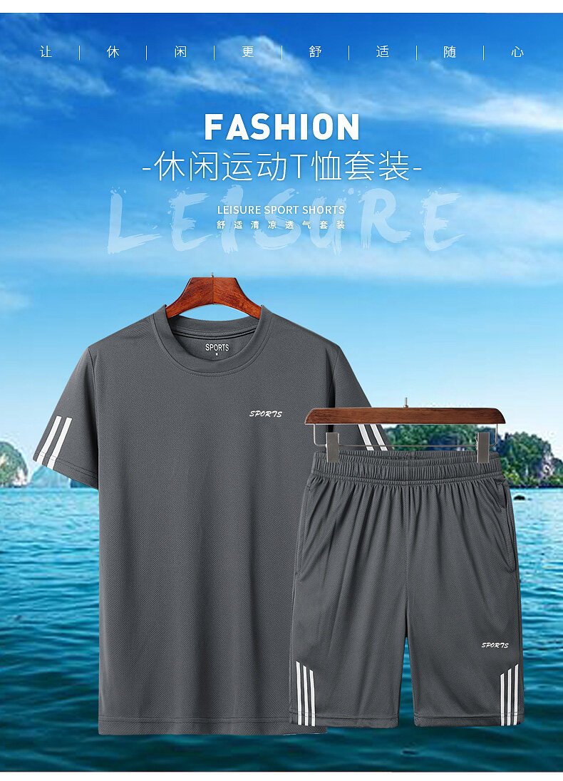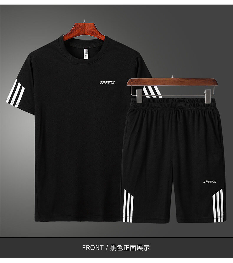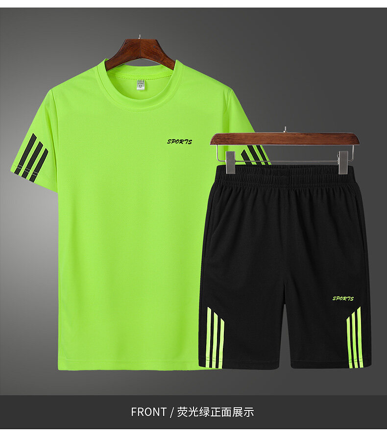 여름 통기성 스포츠 세트 남자의 반팔 반바지 느슨한 속건 티셔츠 짧은 바지 캐주얼 러닝 세트스토어 가기