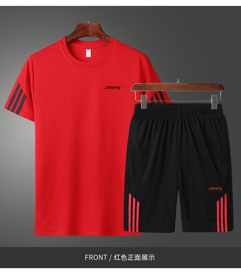 여름 통기성 스포츠 세트 남자의 반팔 반바지 느슨한 속건 티셔츠 짧은 바지 캐주얼 러닝 세트