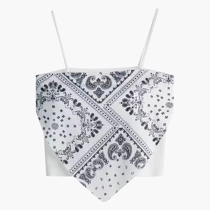 스파이스 걸스 캐슈 플라워 캐미솔 디자인 감각 틈새 복장 여름 짧은 스퀘어 스카프 끈이없는 실크 스카프 달콤한 쿨 탑