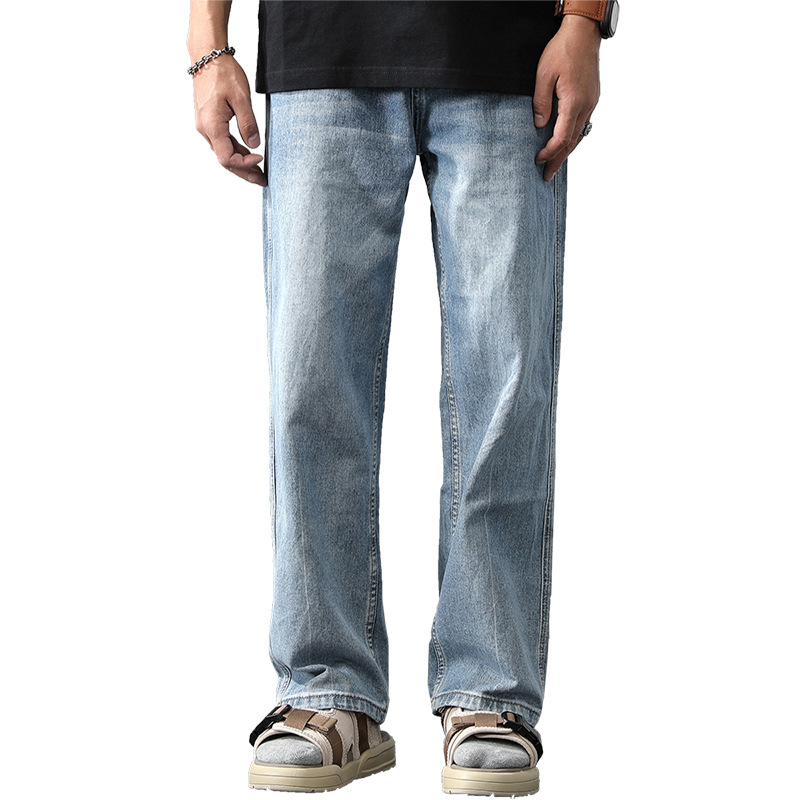 새로운 청바지 남자의 일본 사계절 캐주얼 트렌디 느슨한 스트레이트 트렌디 브랜드 라이트 컬러 레트로 와이드 레그 아빠 바지스토어 가기