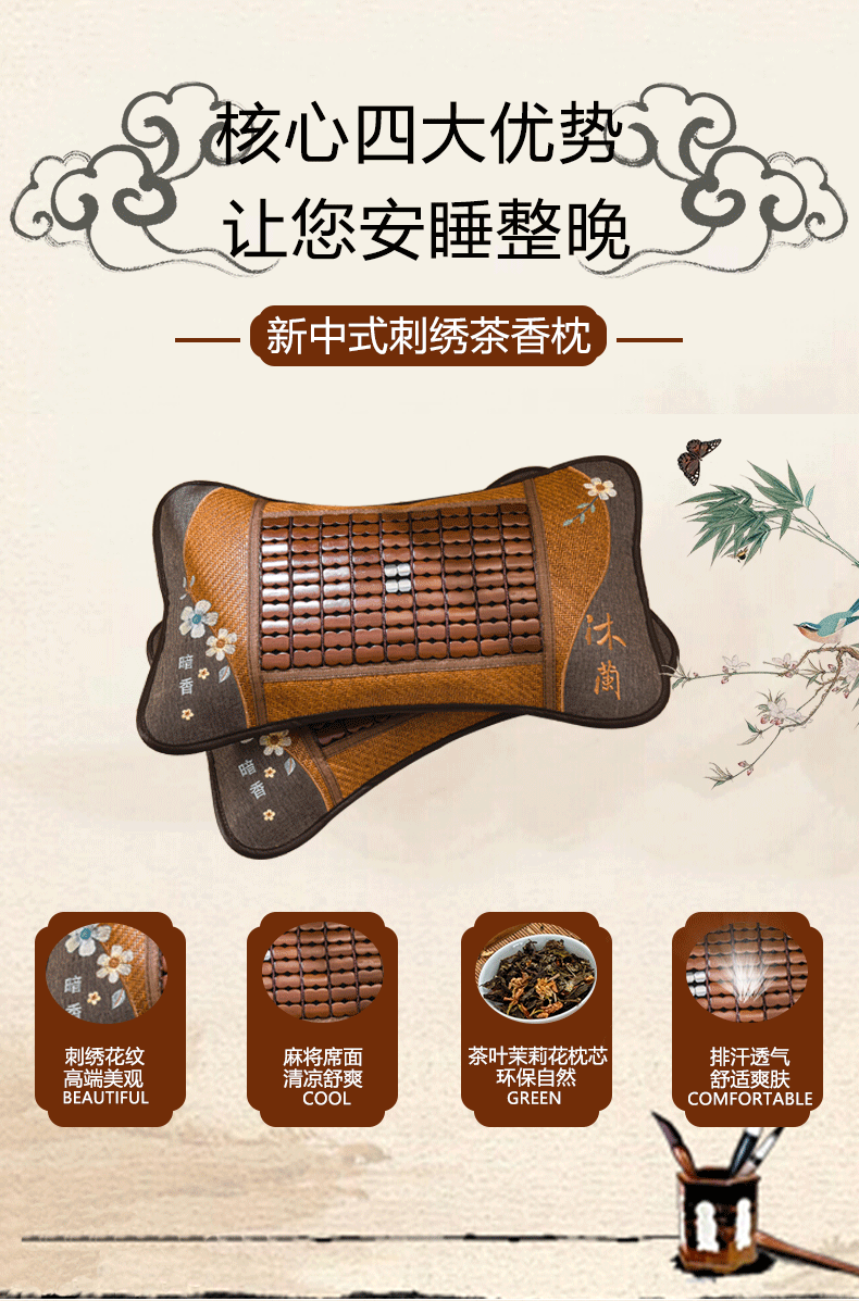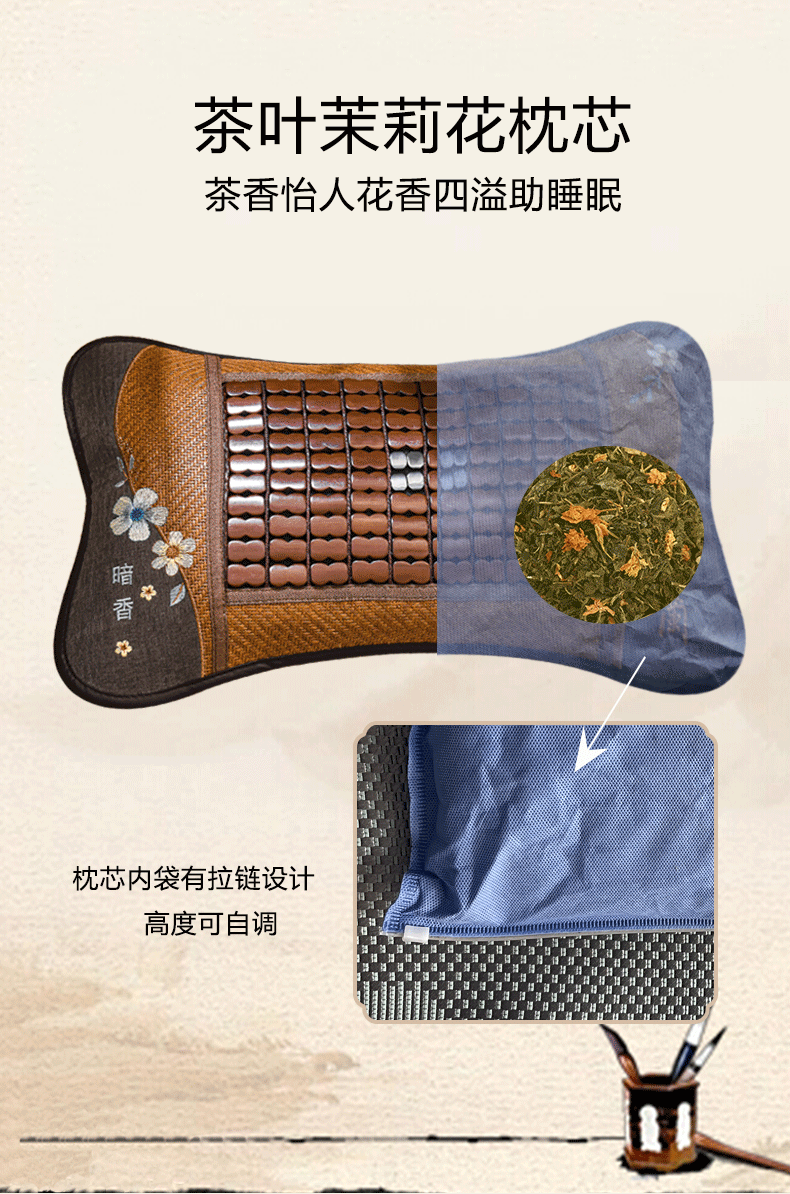 여름 시원한 베개 차 재스민 싱글 낮잠 성인 베개 학생 기숙사 마작 대나무 베개 세대스토어 가기