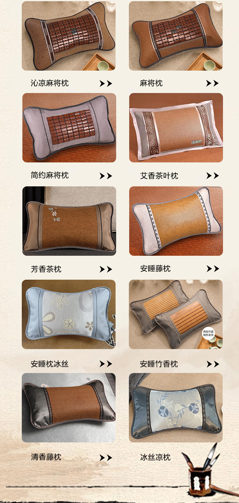 여름 시원한 베개 차 재스민 싱글 낮잠 성인 베개 학생 기숙사 마작 대나무 베개 세대