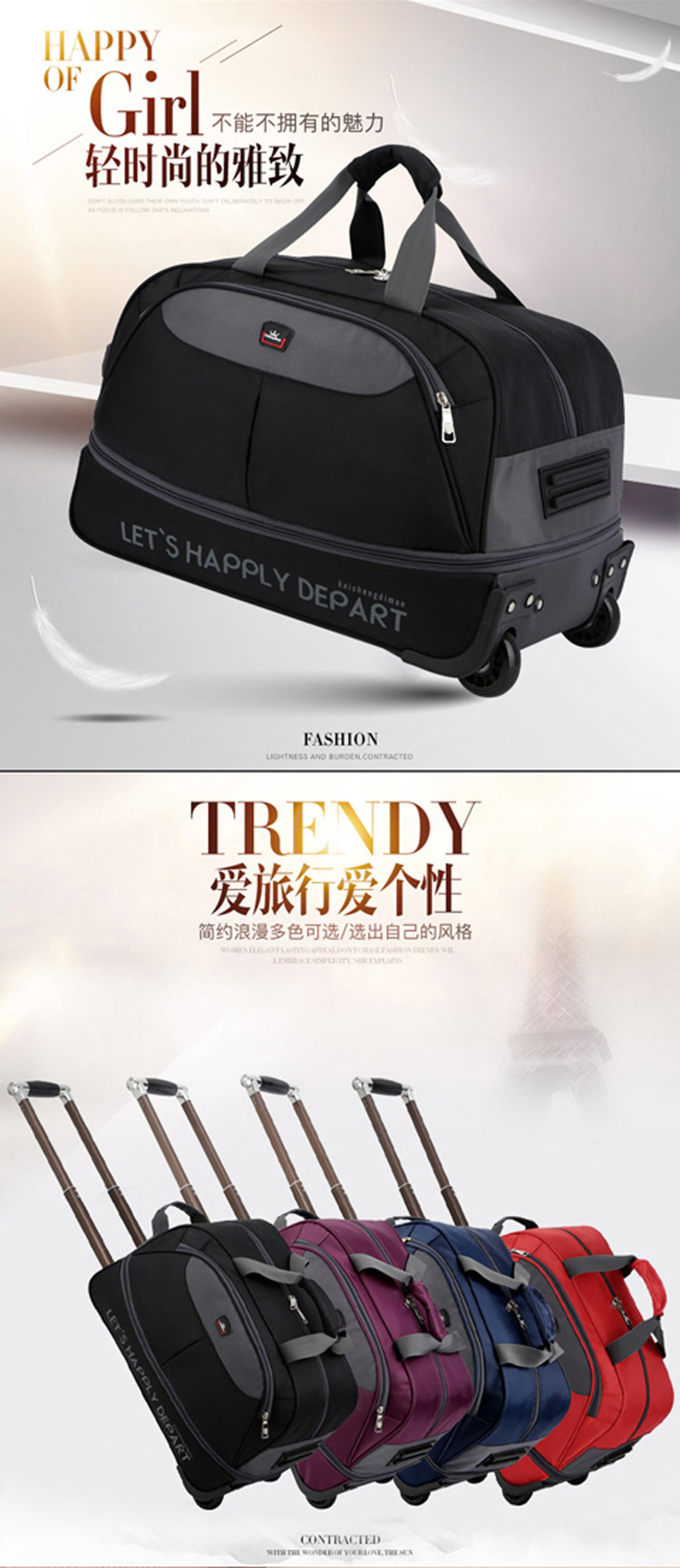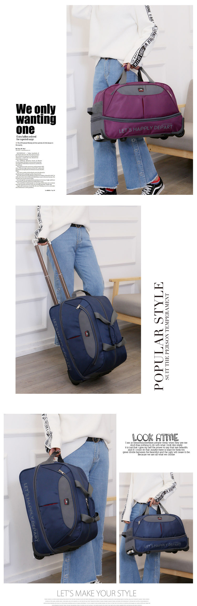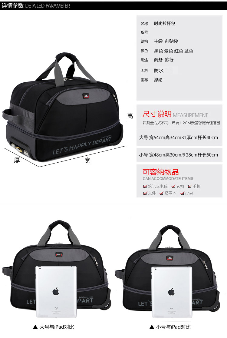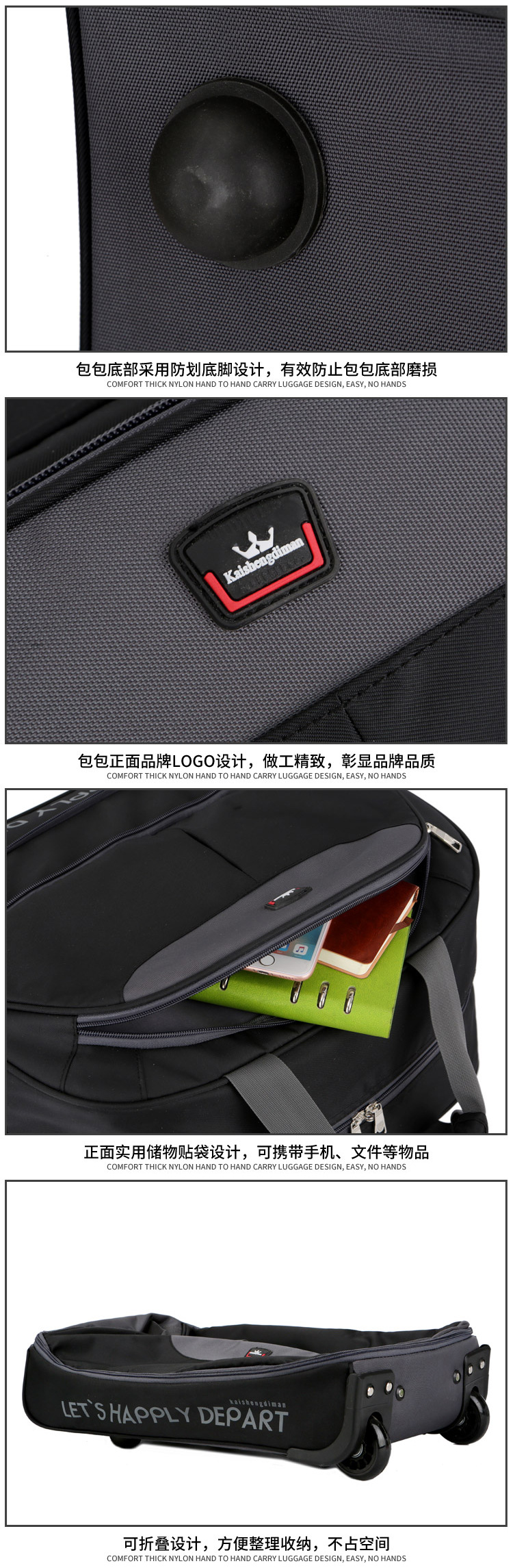 남성과 여성을위한 휴대용 트롤리 가방 탑승 대용량 여행 가방 경량 접이식 트롤리 케이스 비즈니스 탑승 상자 천 가방