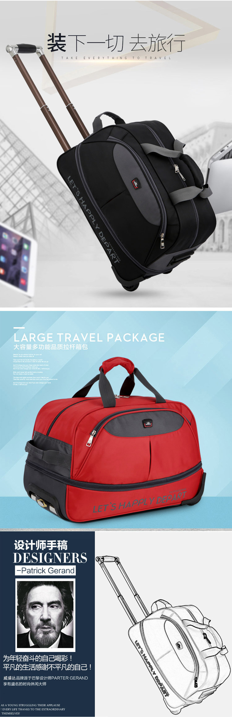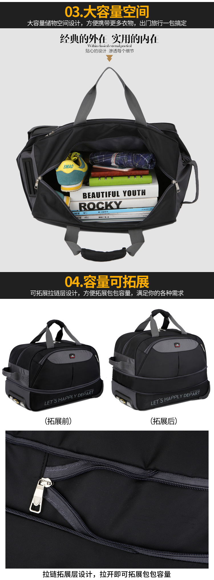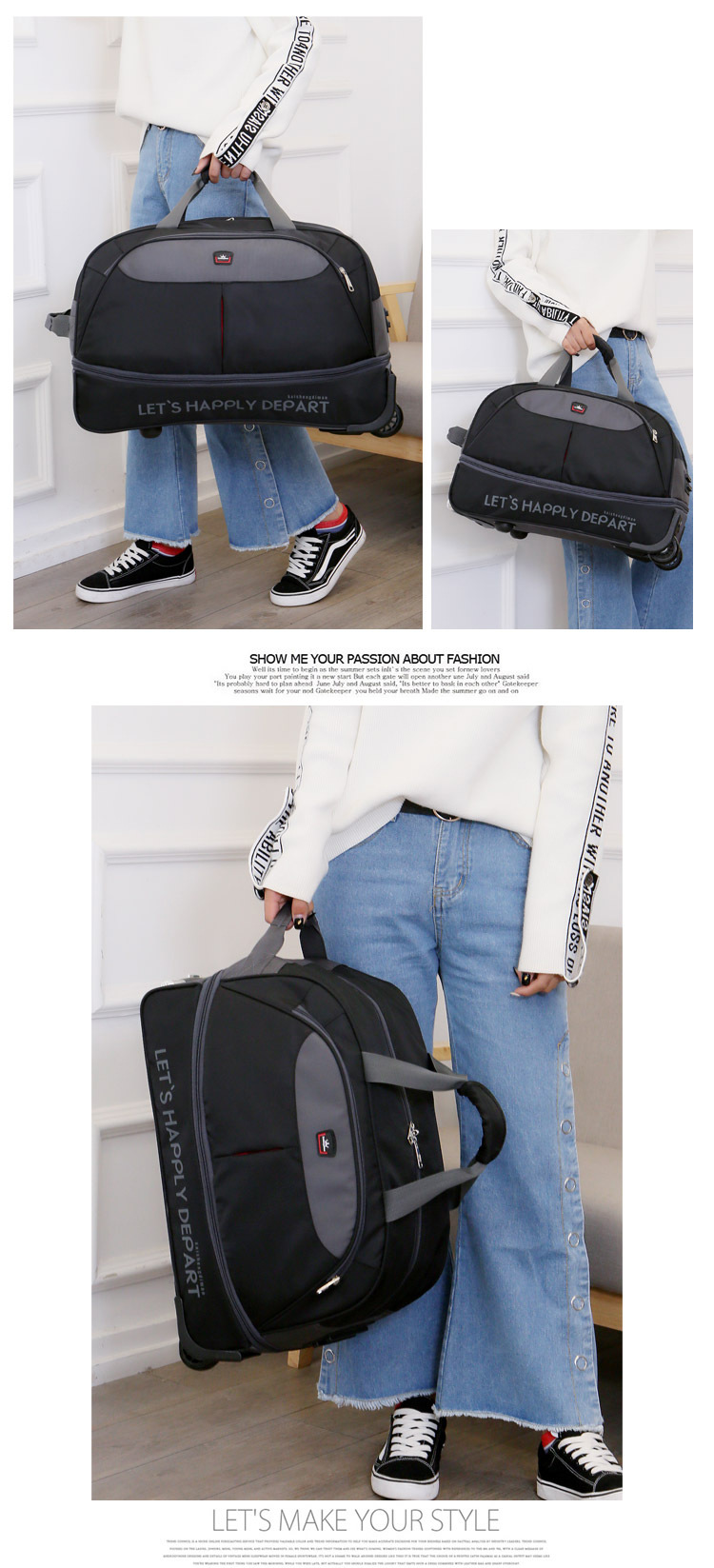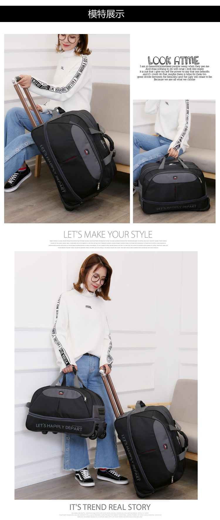 남성과 여성을위한 휴대용 트롤리 가방 탑승 대용량 여행 가방 경량 접이식 트롤리 케이스 비즈니스 탑승 상자 천 가방