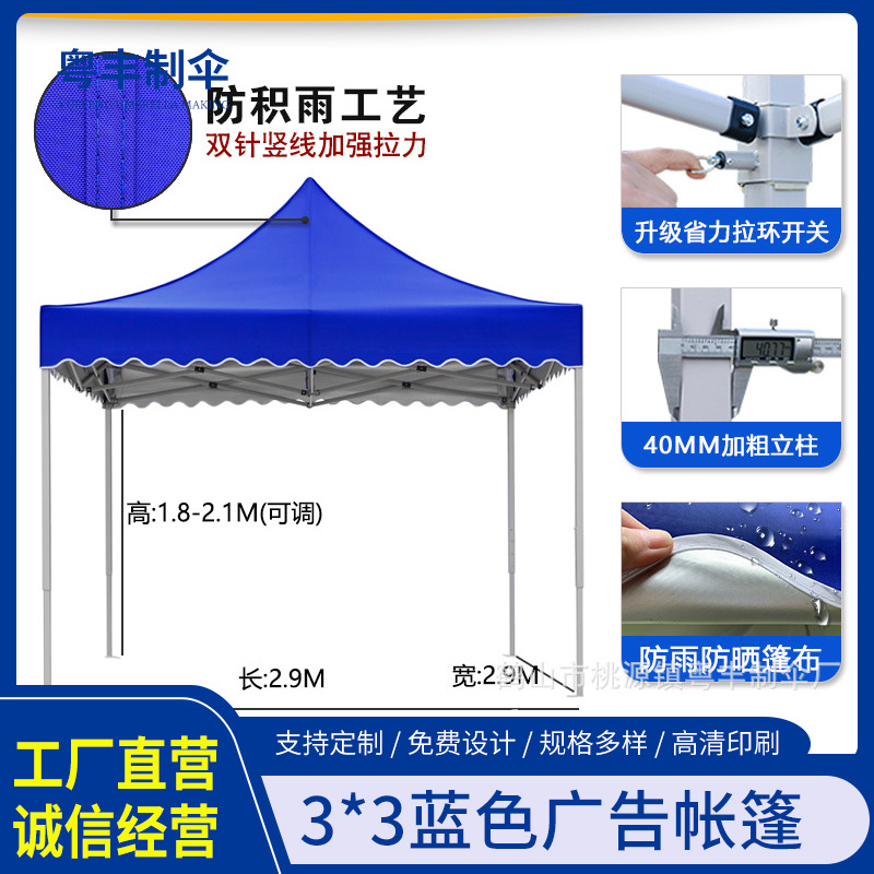 3*3 야외 차양 텐트 임시 판매 부스 전시 텐트 비막이 광고 인쇄 접이식 텐트 로고 표시스토어 가기