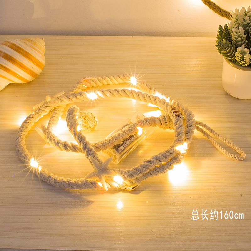 LED 크리스마스 휴일 빛 문자열 바다 바람 쉘 불가사리 면 로프 장식 조명 침실 식당 조명 배터리 조명