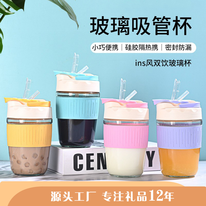 물컵 여성용 한국식 인 스타일 투명 더블 드링크 컵 뚜껑 유리 컵 커피컵 휴대용 반주 컵 슬리퍼 컵스토어 가기