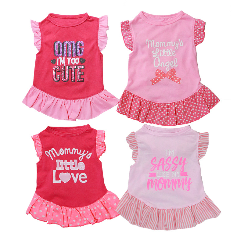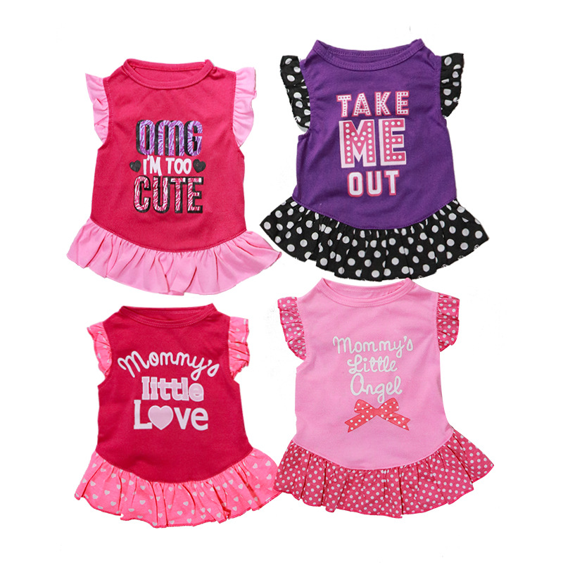 애완 동물 옷 여름 면 플라이 슬리브 스커트 조합은 고양이와 개 옷 작은 개를 위해 특별히 설계되었습니다.