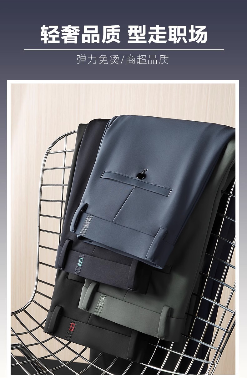 고급 남성 캐주얼 바지 봄 여름 비즈니스 팬츠 남성용 2026 여름 얇은 스트레이트 핏 신축성 있는 드레이프 웨스트 팬츠스토어 가기
