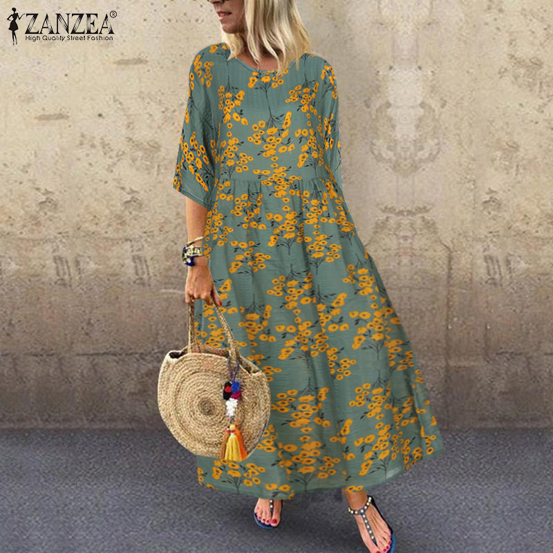 유럽과 미국의 2021 새로운 봄 격자 무늬 여름 캐주얼 예술적 기질 반팔 둥근 목 큰 진자 원피스스토어 가기