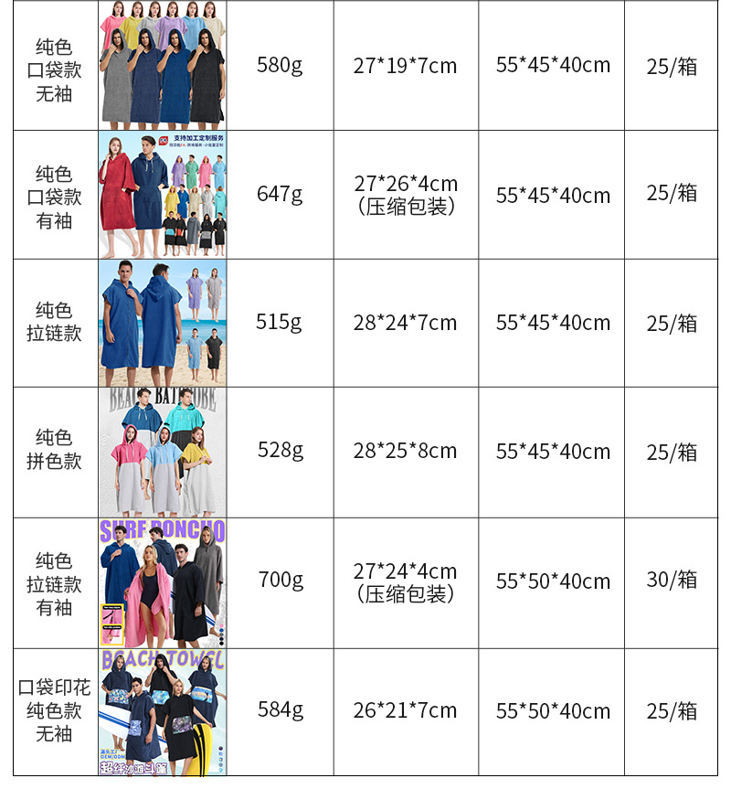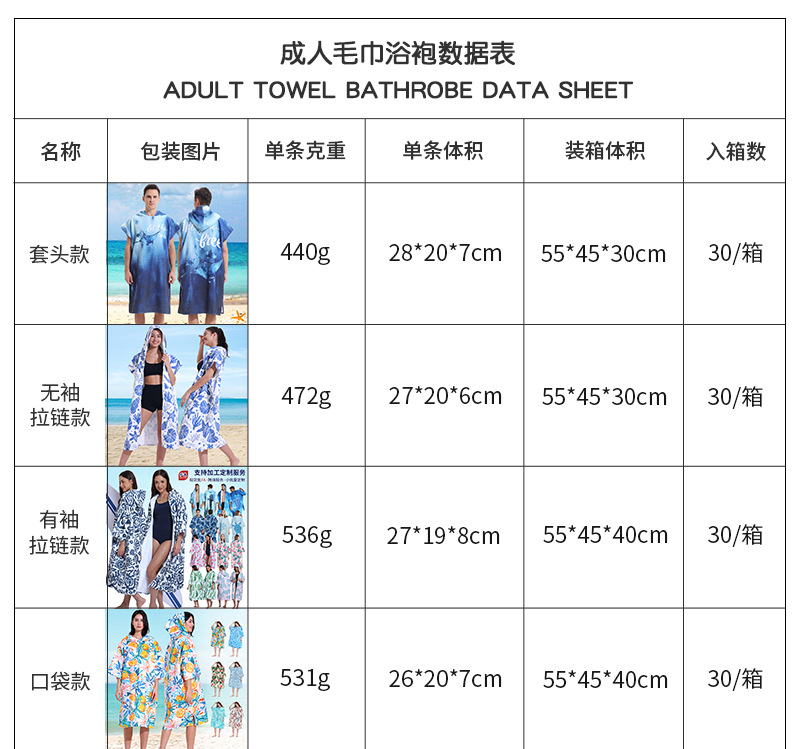 各种毛巾布浴袍产品参数如下: