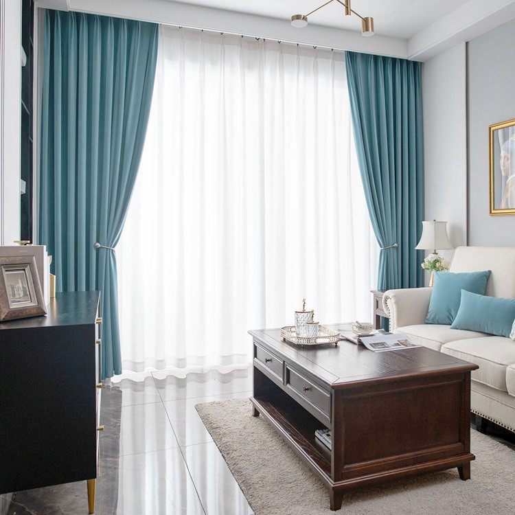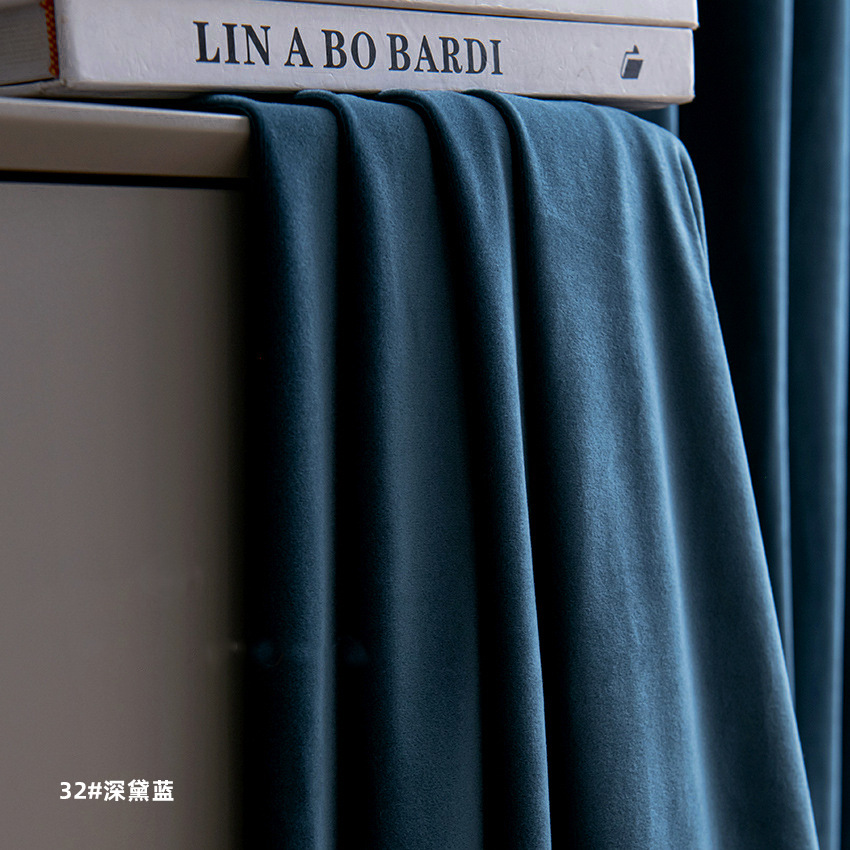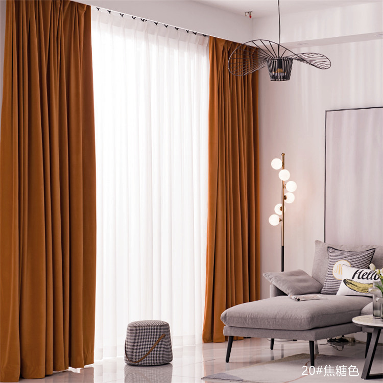 현대 간단한 북유럽 단색 두꺼운 부드러운 음영 양모 양털 완성 커튼 거실 침실 베이 창스토어 가기