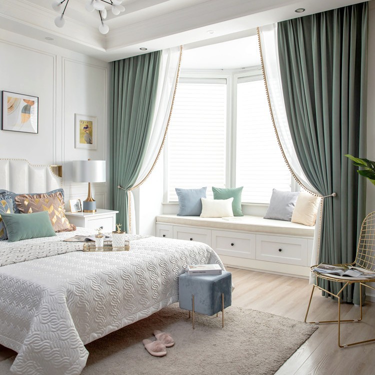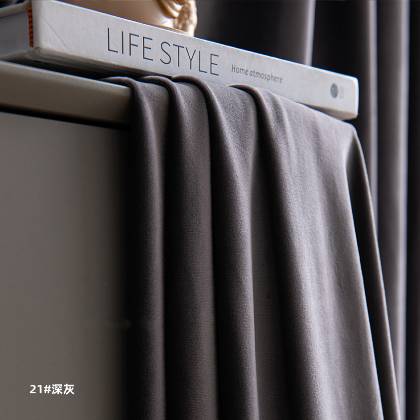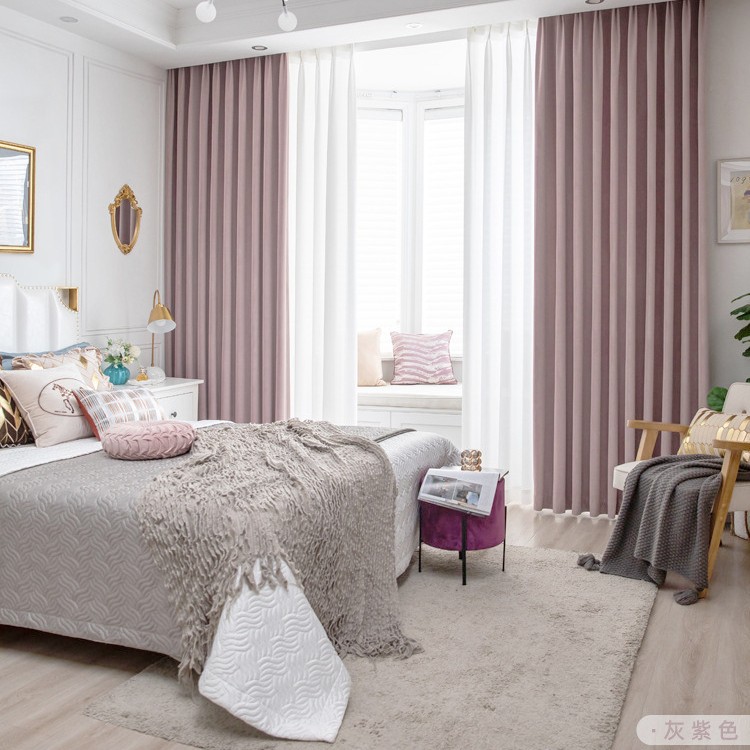 현대 간단한 북유럽 단색 두꺼운 부드러운 음영 양모 양털 완성 커튼 거실 침실 베이 창