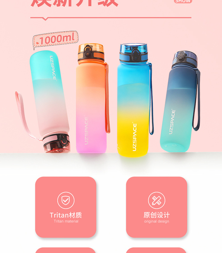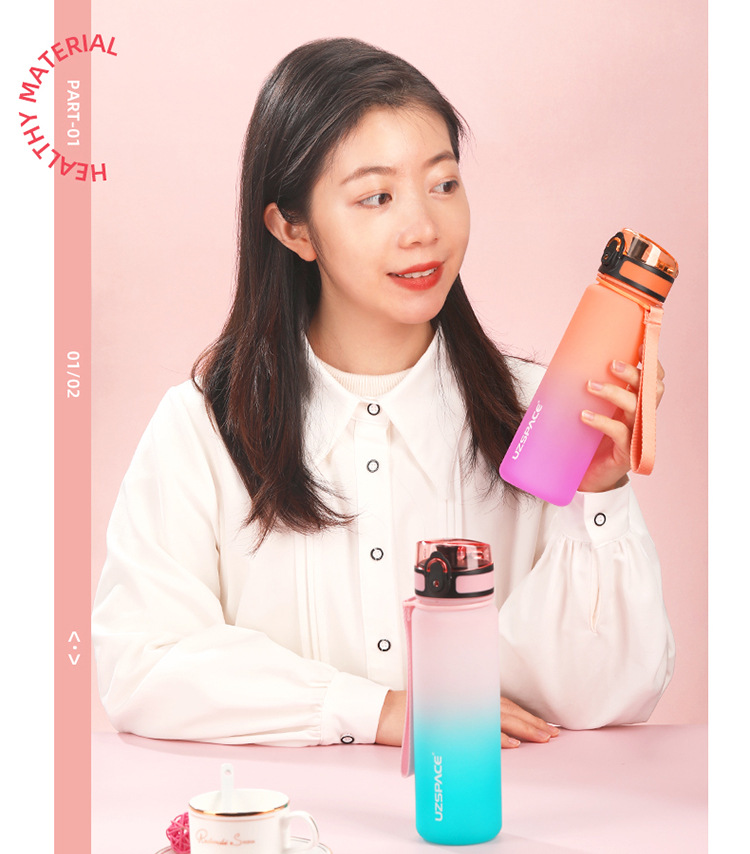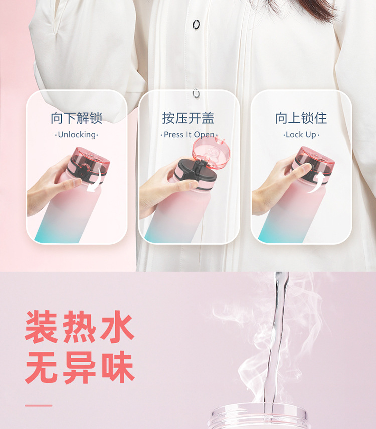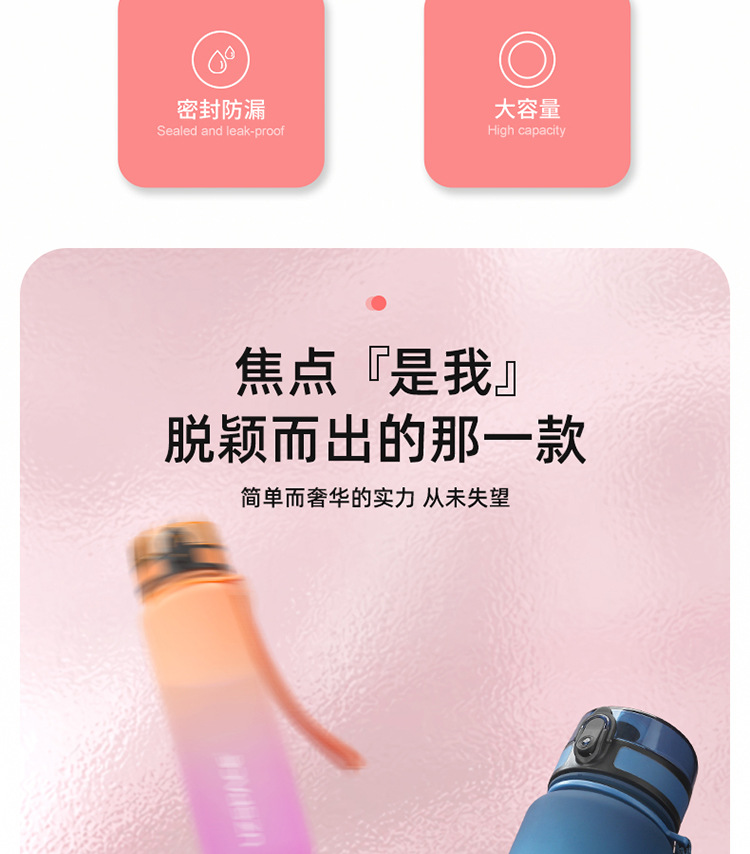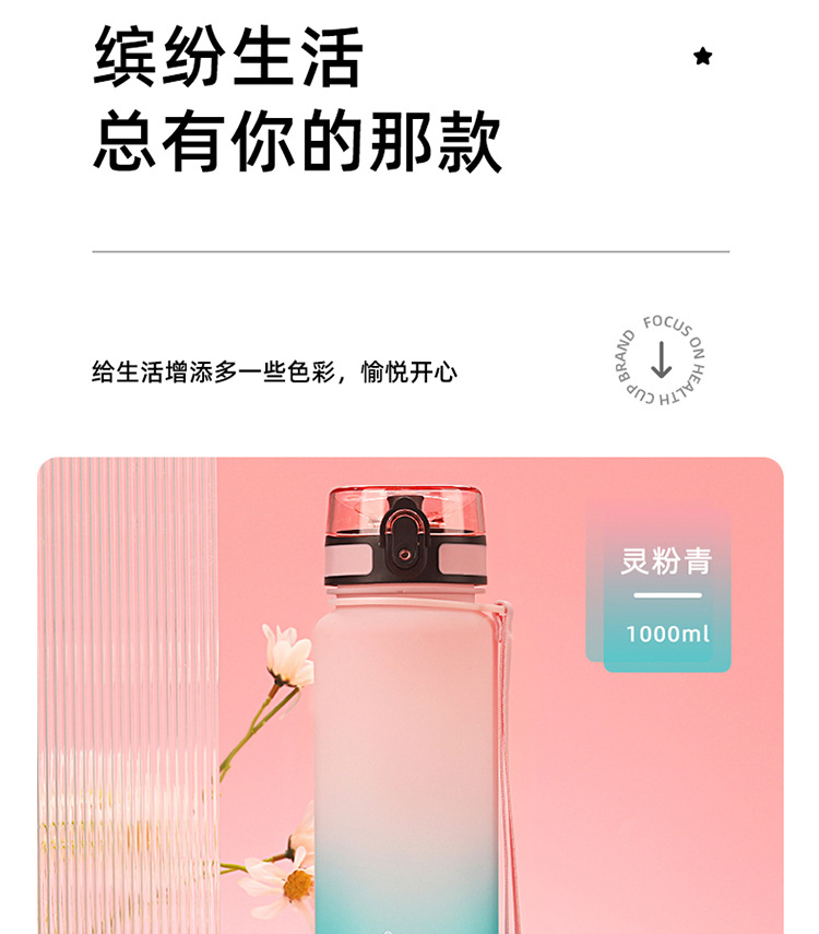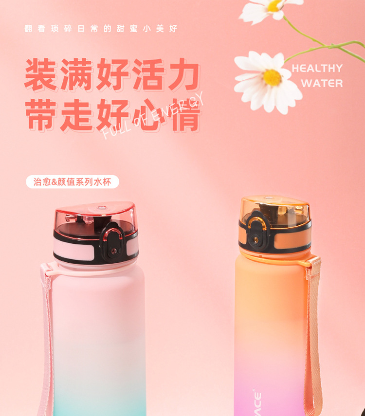 여성용 현장 우수한 다채로운 물컵, 남성용 야외 휴대용 스포츠 물병, 학생용 대용량 탄성 뚜껑 직접 마시는 플라스틱 컵
