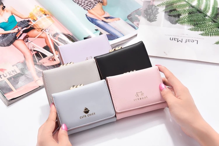 2022 새 지갑 여자의 짧은 한국 스타일 학생 신선한 접이식 미니 금속 지갑 귀여운 동물 동전 지갑스토어 가기
