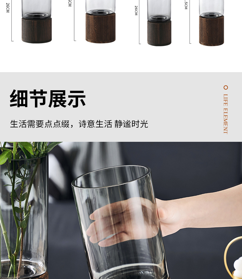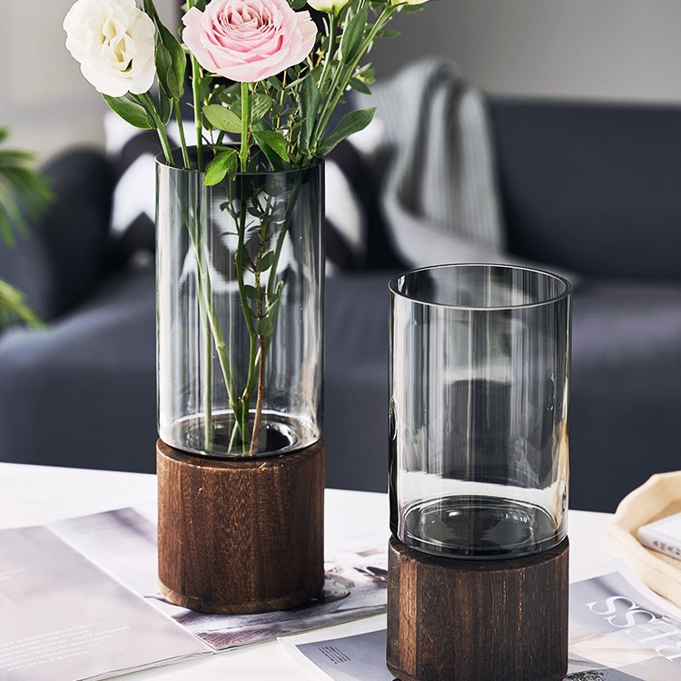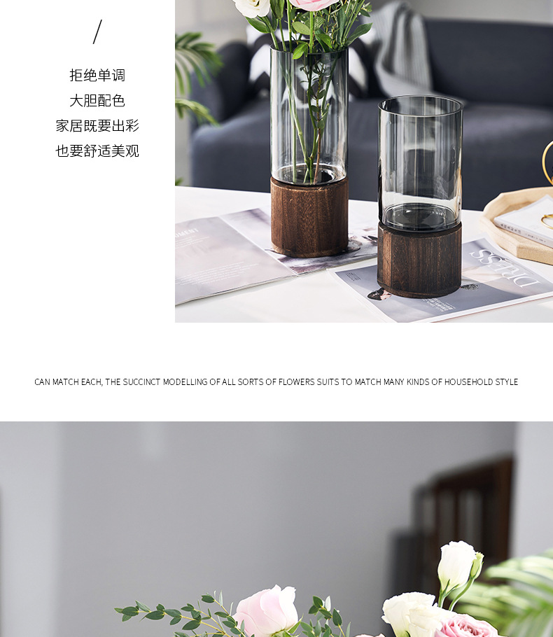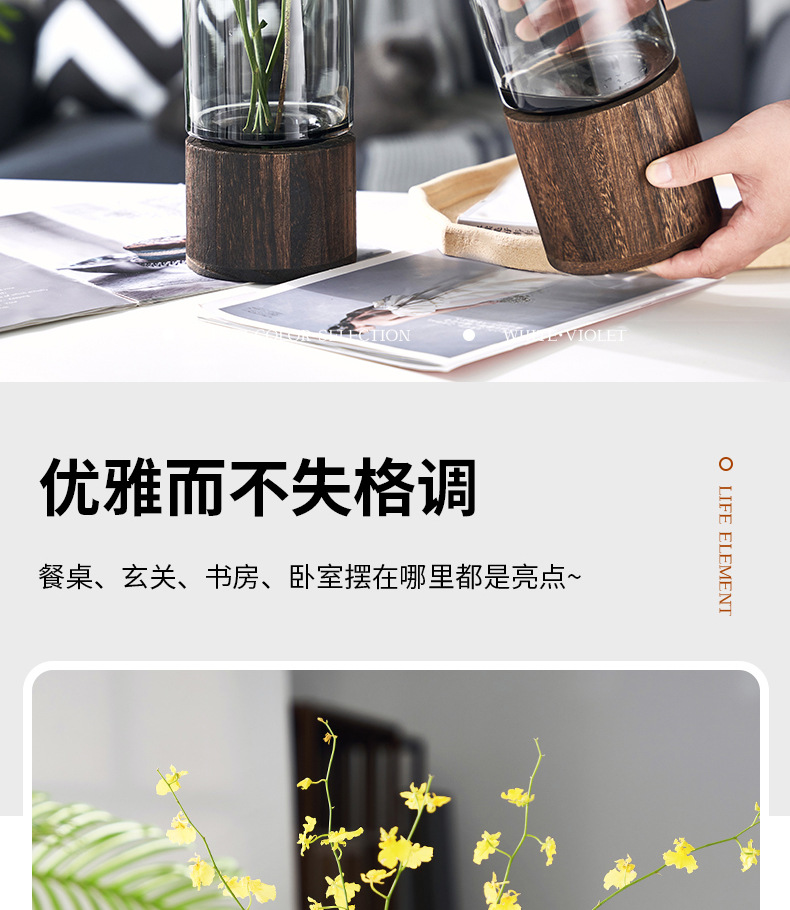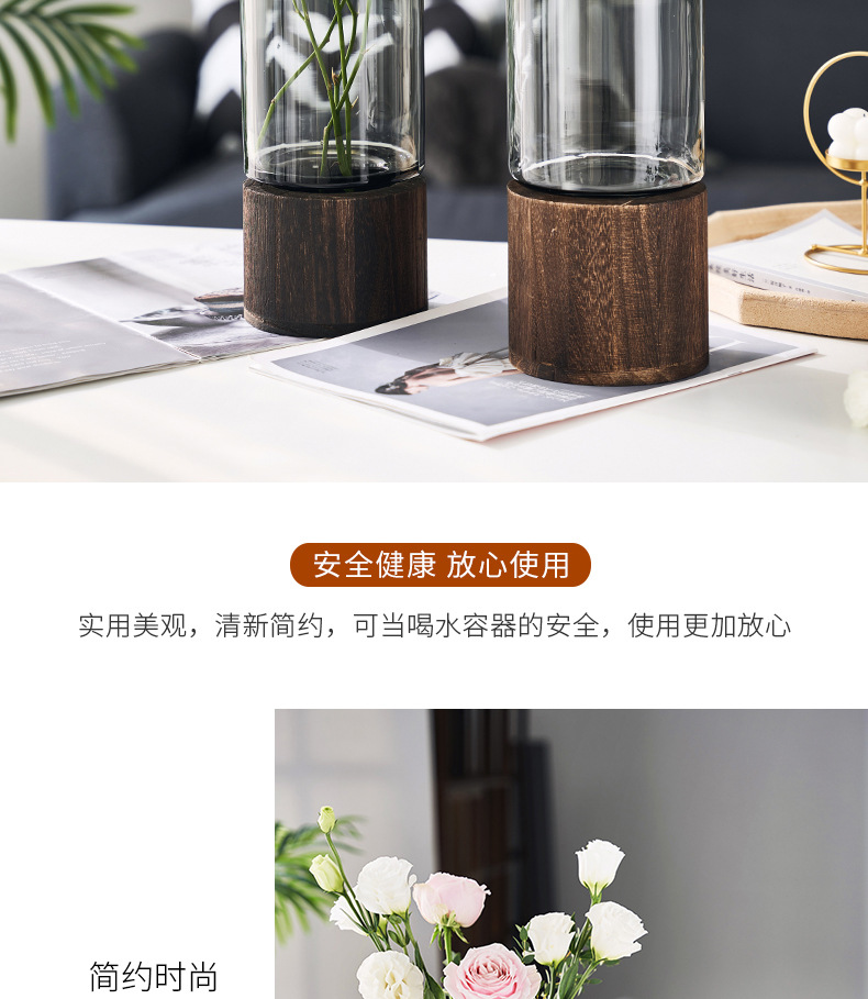 새로운 중국 스타일 유리 꽃병 물 제기 꽃 말린 꽃 말 취한 나무 꽃 배열 장식품 거실 데스크탑 모델 방 장식