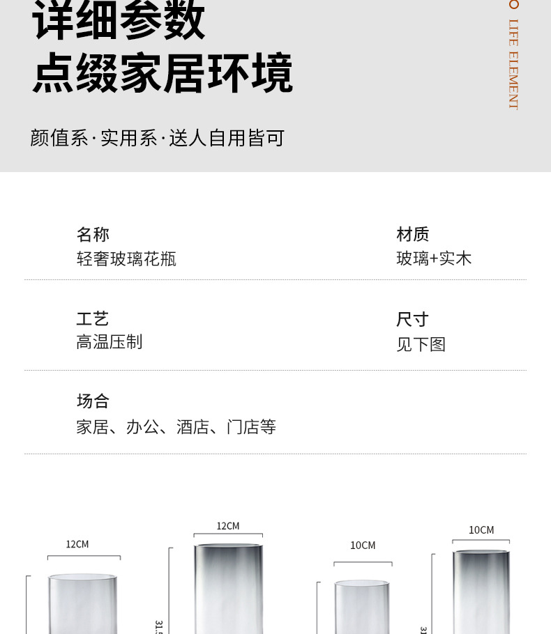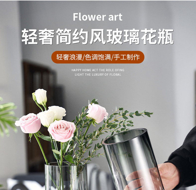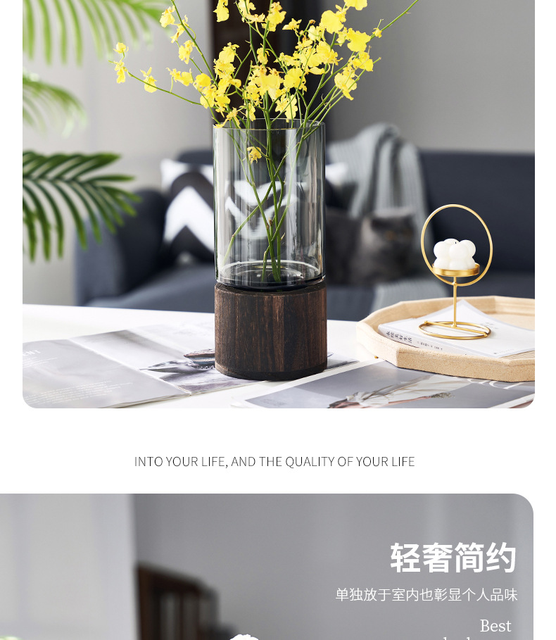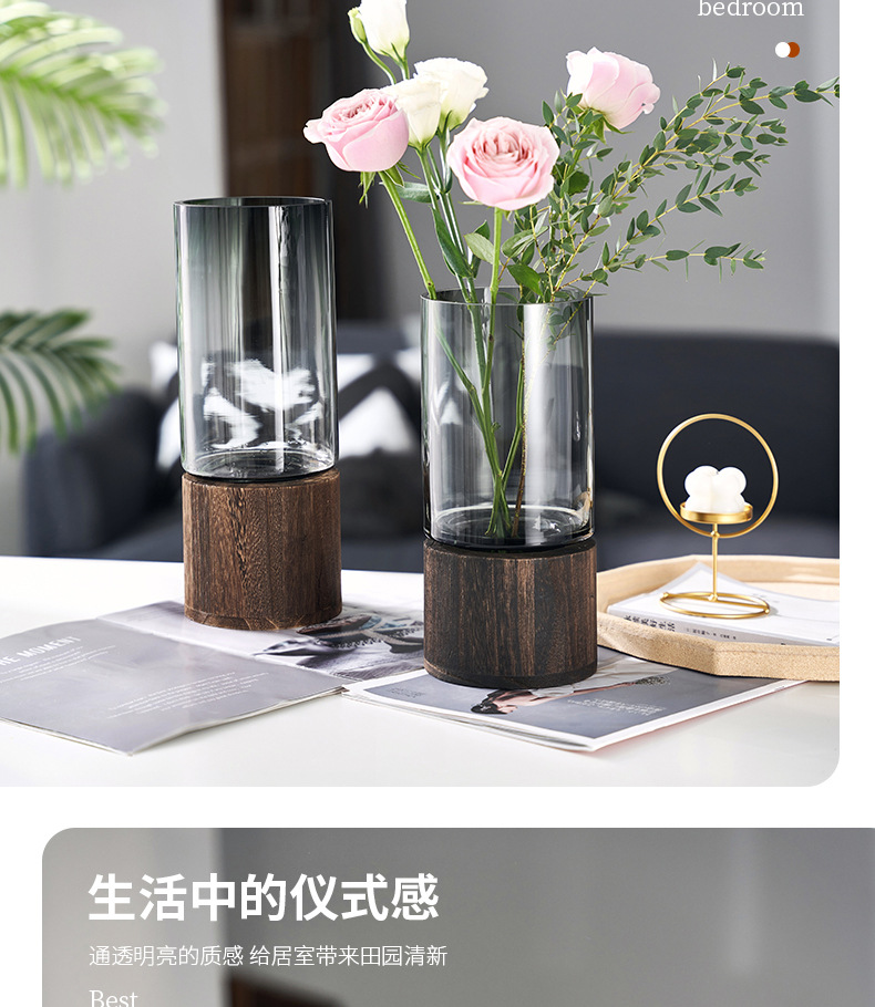 새로운 중국 스타일 유리 꽃병 물 제기 꽃 말린 꽃 말 취한 나무 꽃 배열 장식품 거실 데스크탑 모델 방 장식
