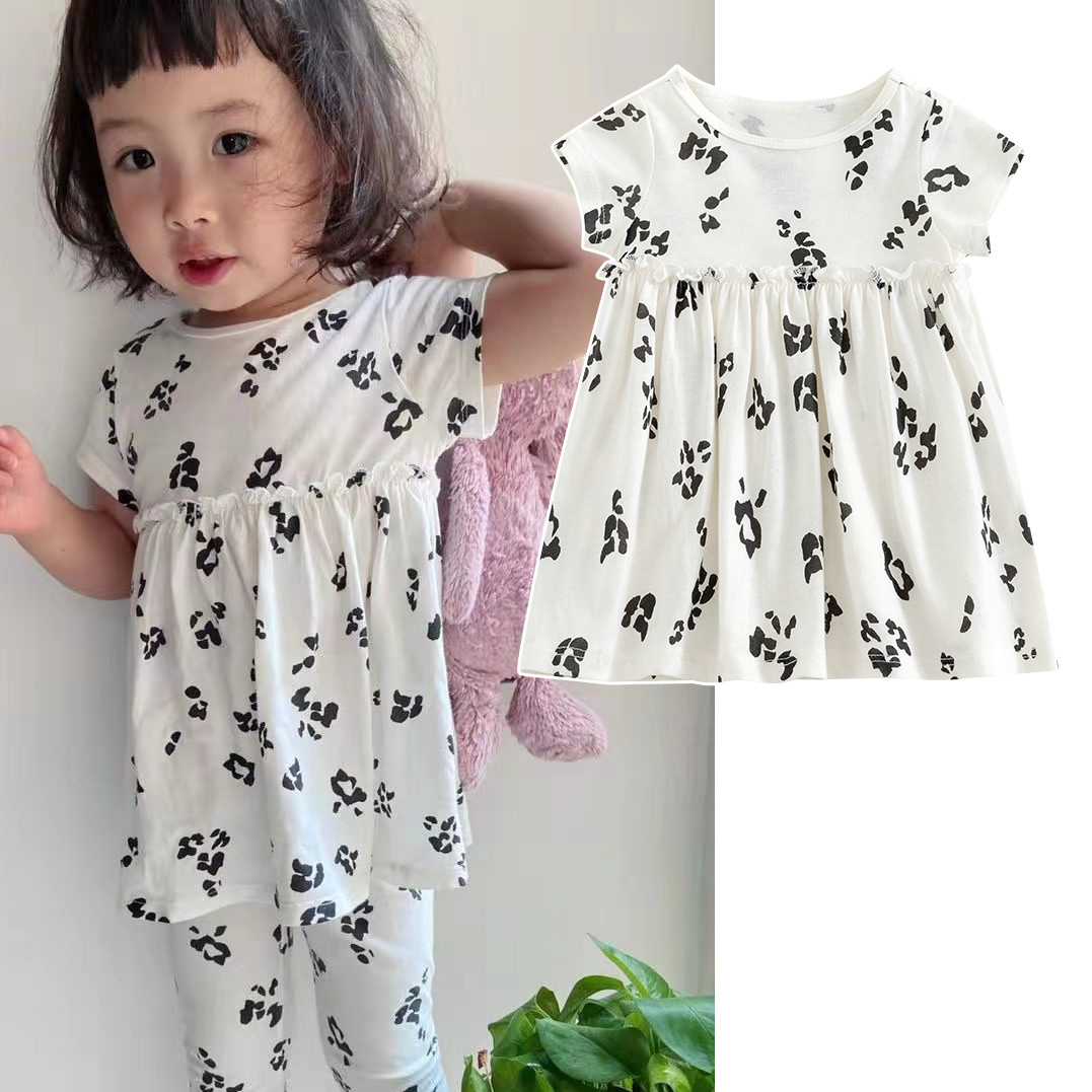 다양한 전체 인쇄 얇은면 스커트 피부 친화적 인 1234 세의 아기베이스 셔츠 홈 의류 탑 걸스 반팔 티셔츠