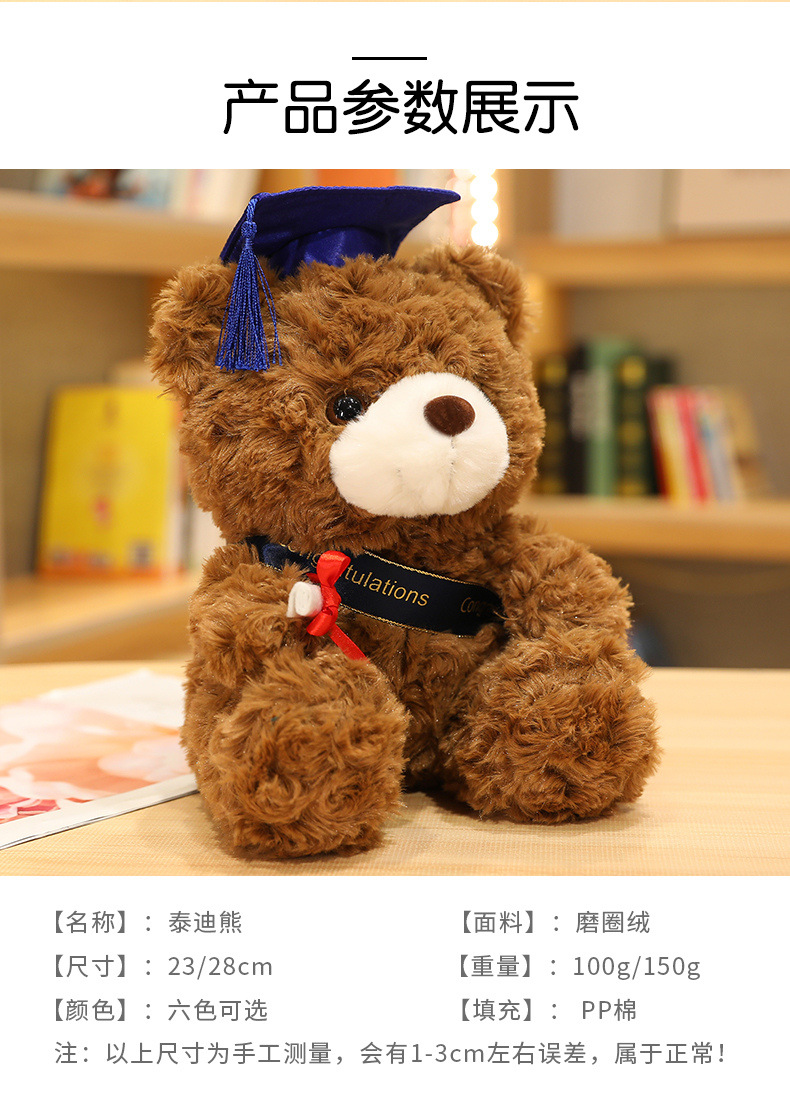 의사 모자 곰 인형 봉제 장난감 테디 베어 졸업 곰 인형 졸업 시즌 크리스마스 선물 인형 착용스토어 가기