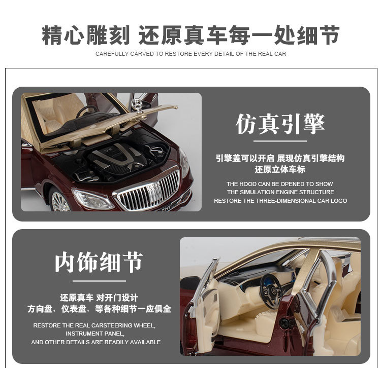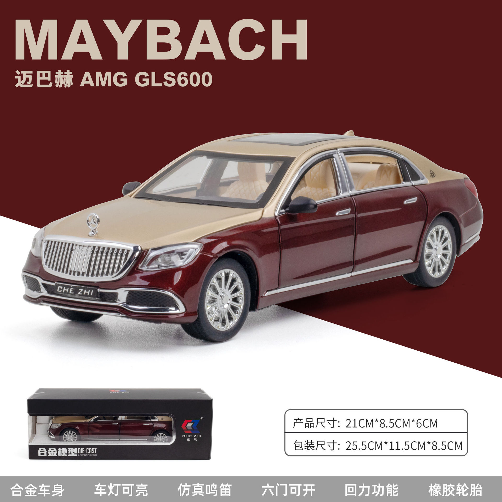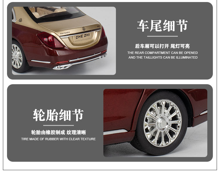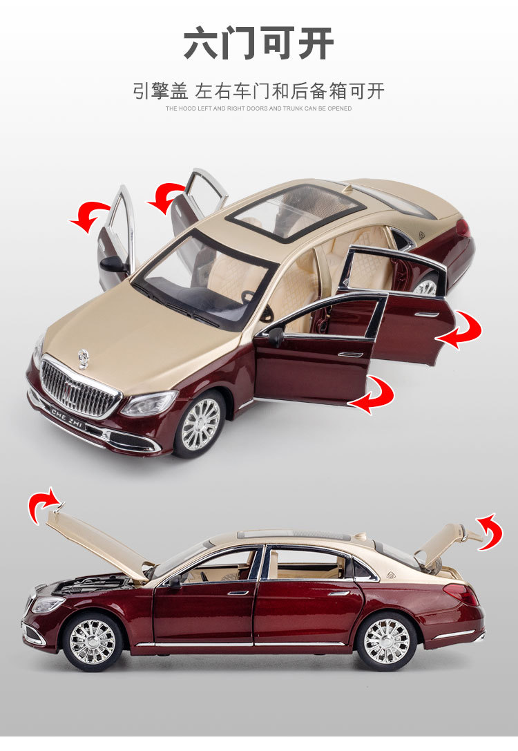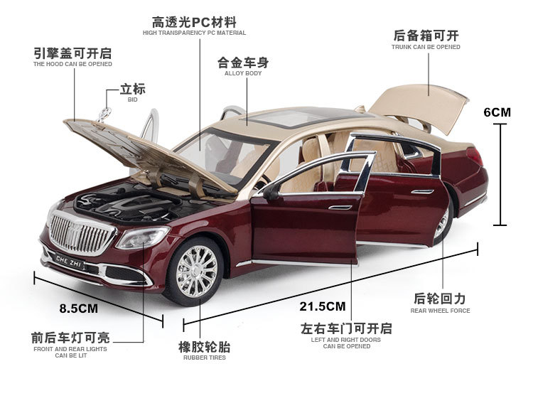 (폼 박스) 1:24 합금 Mayba GLS600 6 도어 사운드 및 라이트 음악 풀백 자동차 모델 컬렉션 장식품