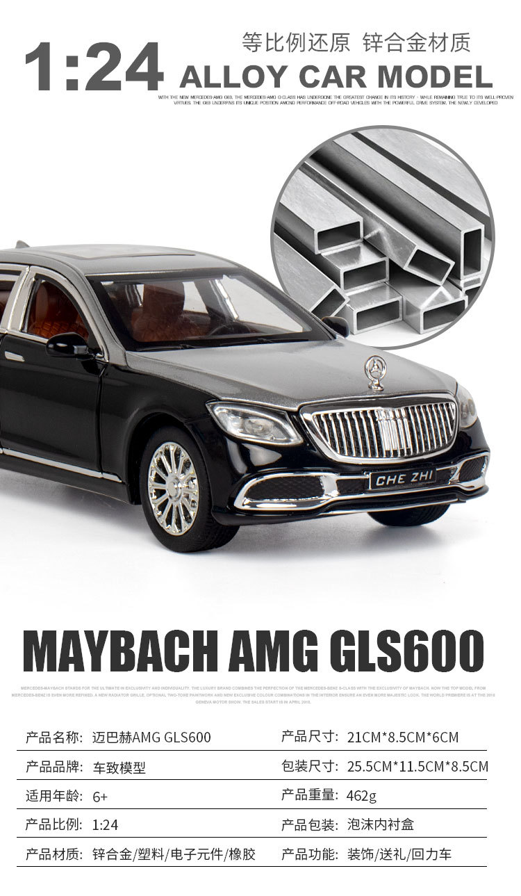 (폼 박스) 1:24 합금 Mayba GLS600 6 도어 사운드 및 라이트 음악 풀백 자동차 모델 컬렉션 장식품스토어 가기