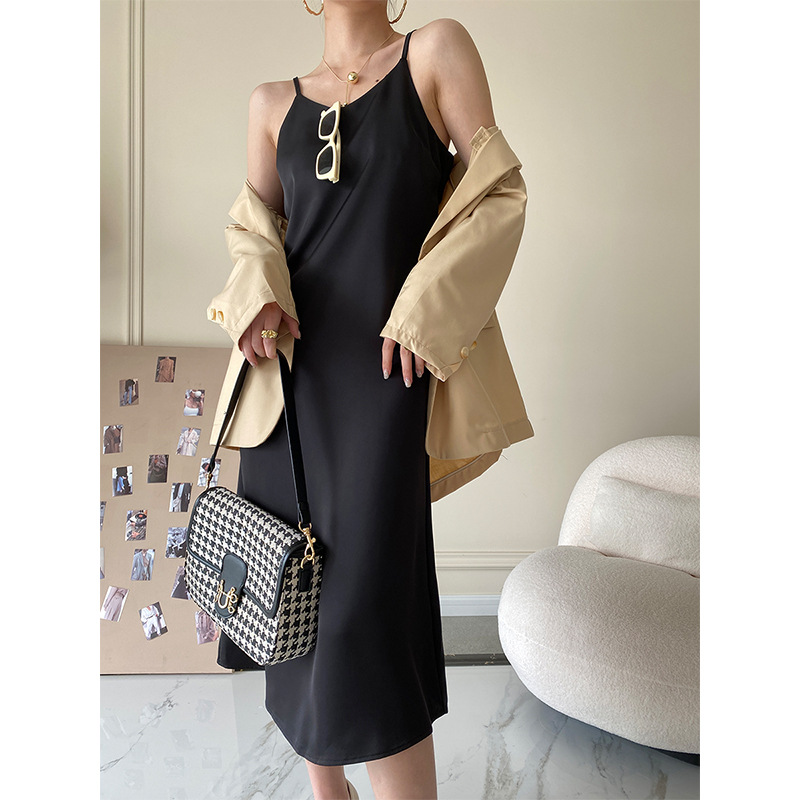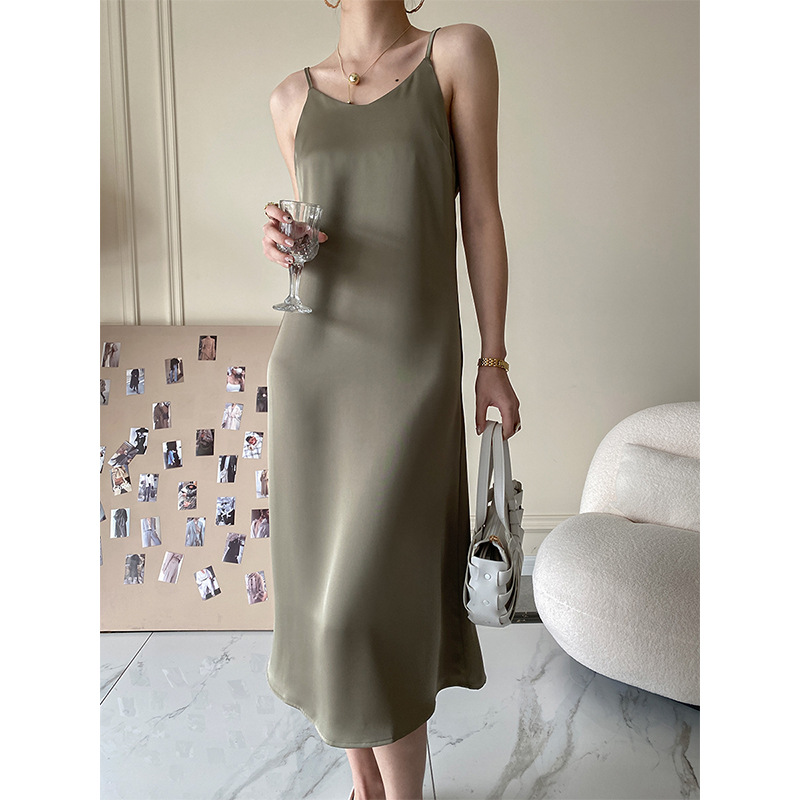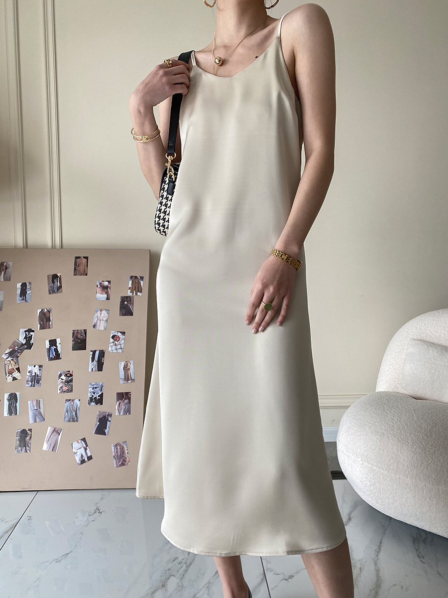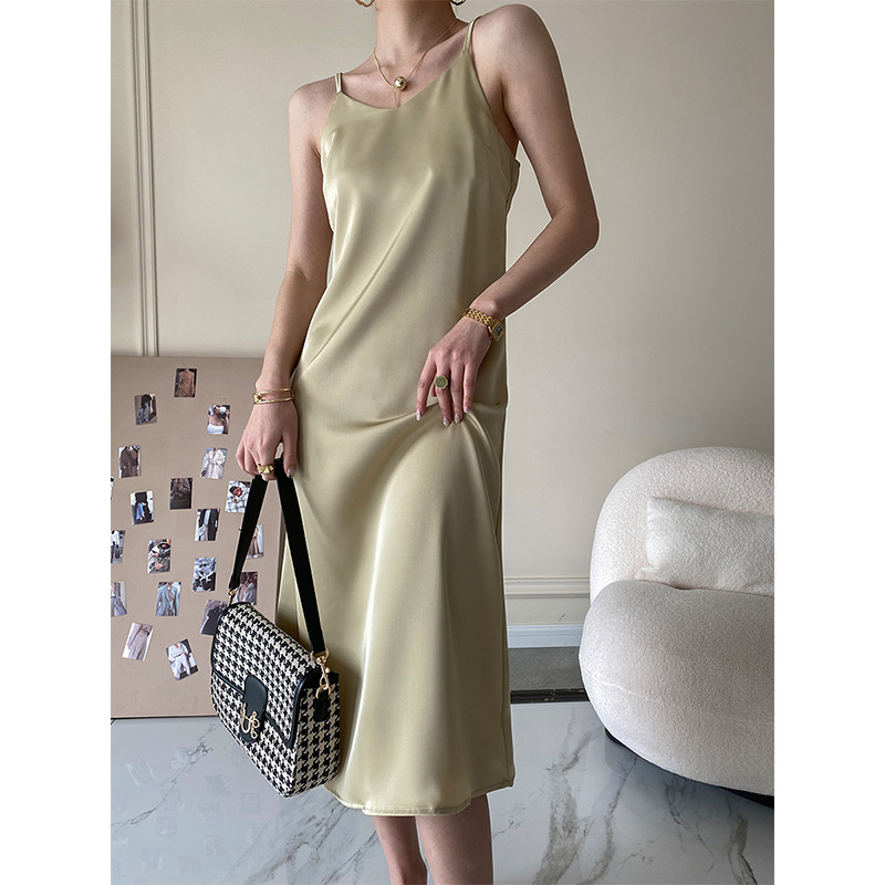 Sinan 프랑스 기질 고급 슬립 스커트 롱 새틴 원피스 디자인 감각 틈새 소형 SN1111스토어 가기