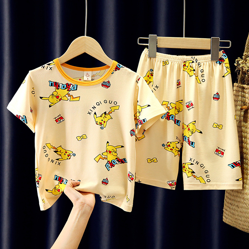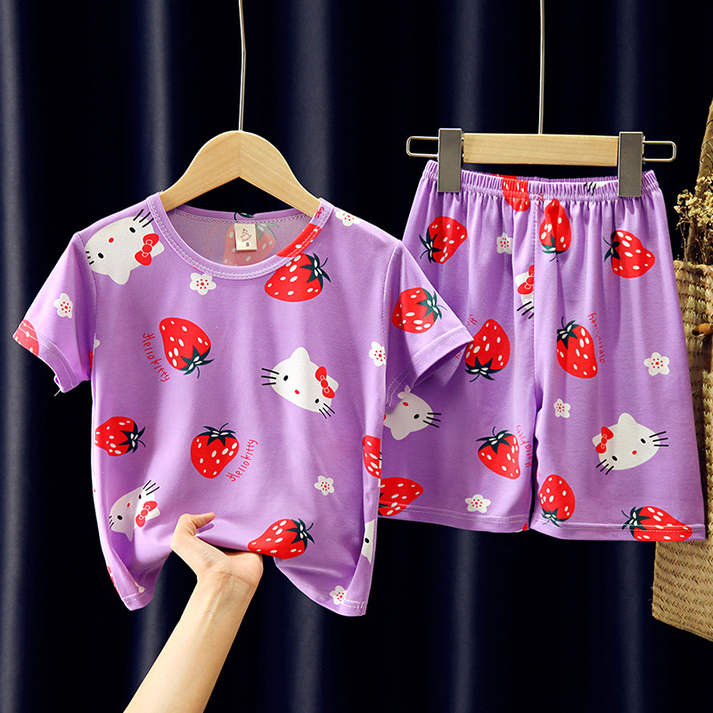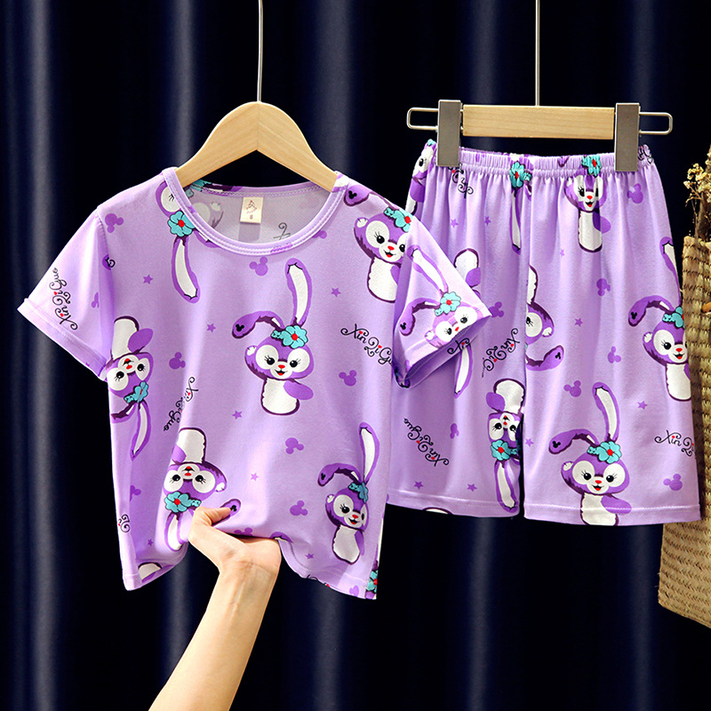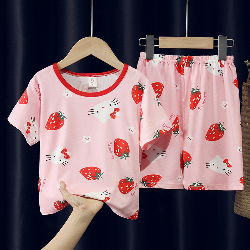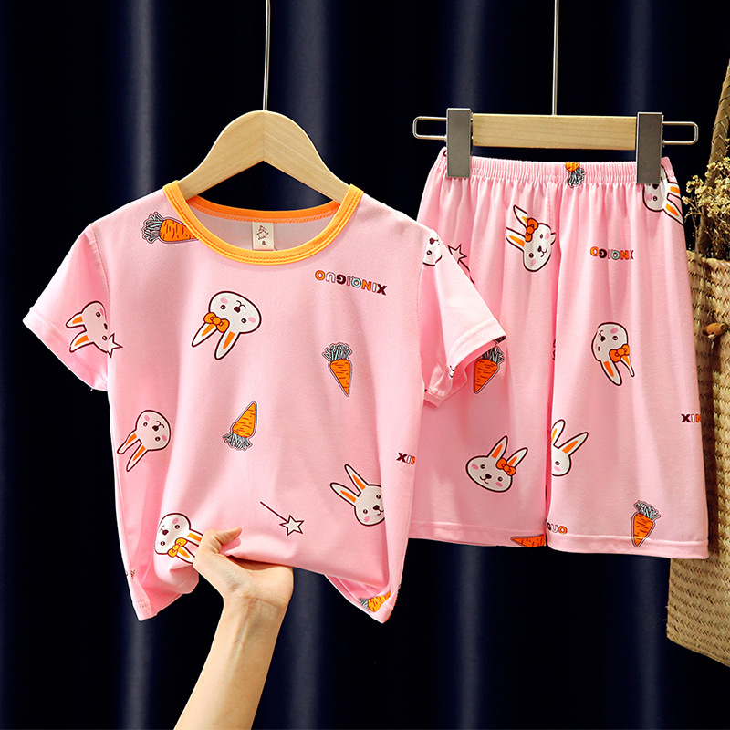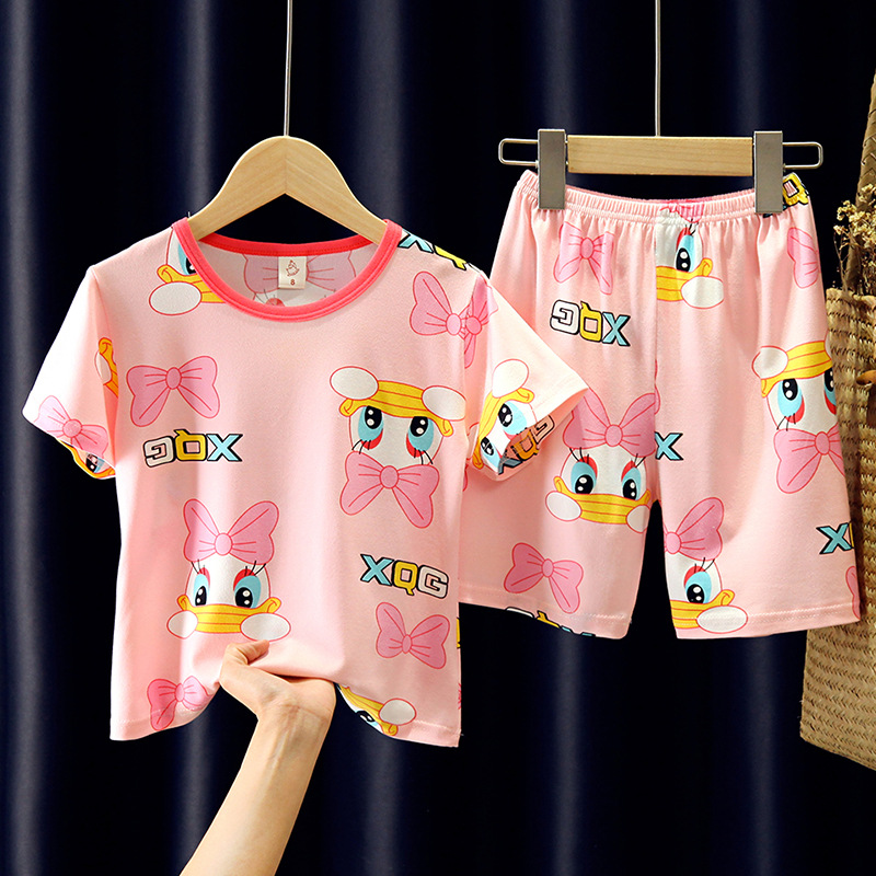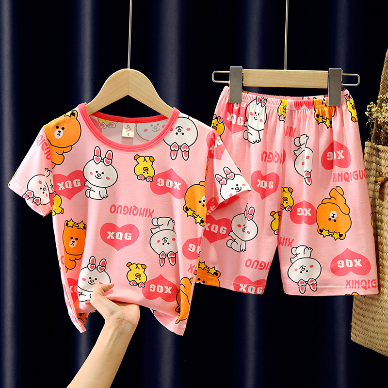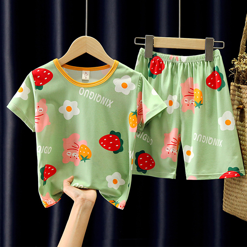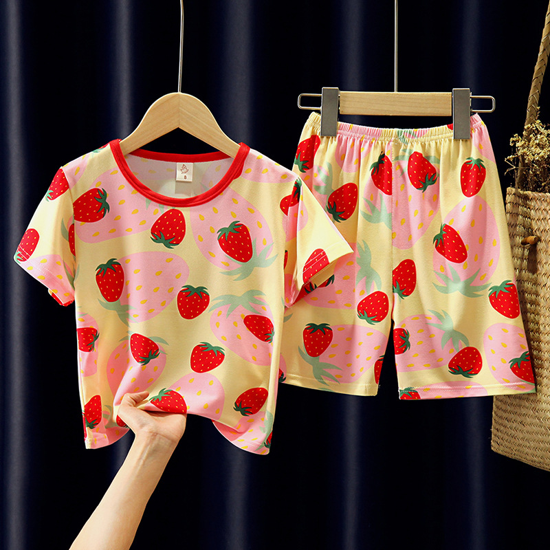 어린이 반팔 세트 여아 여름 옷 어린이 잠옷 아기 여아 에어컨 가정 옷 세트 얇은 속옷