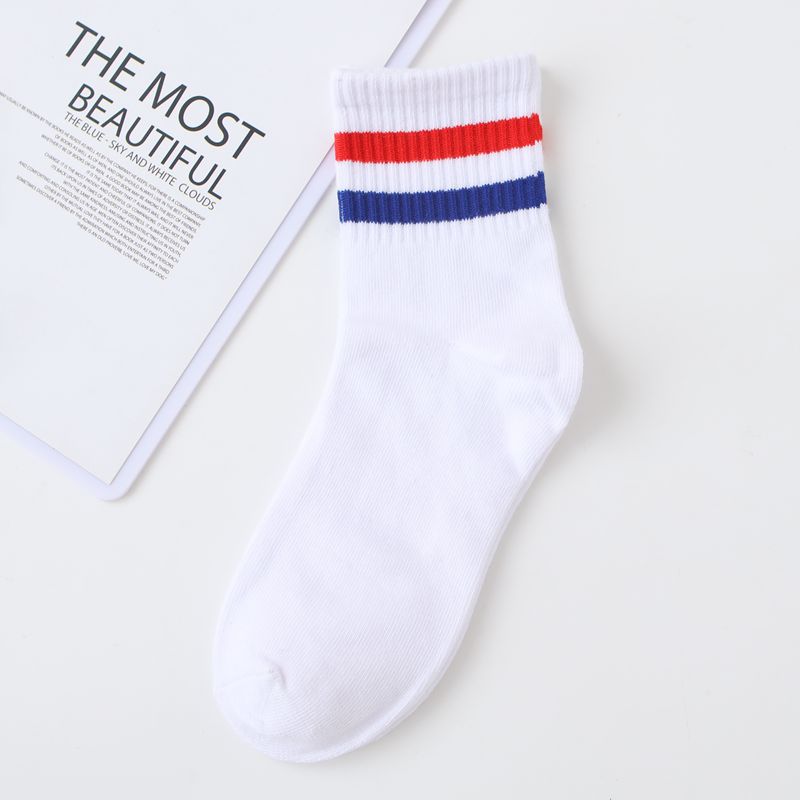 흰색 학생 레인보우 스트라이프, 간단한 중간 실린더 병렬 바 스포츠 양말 독특한 거리 착용 캐주얼 홍콩 스타일 코튼