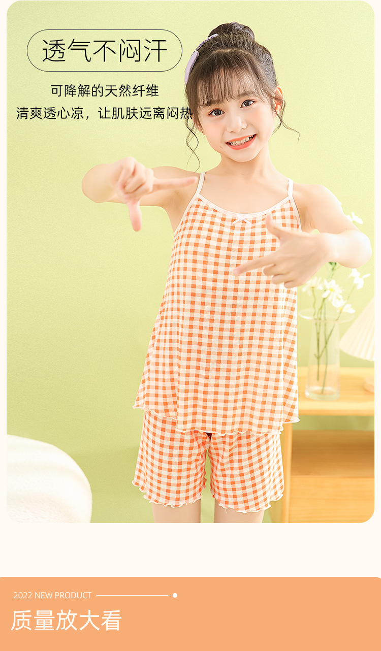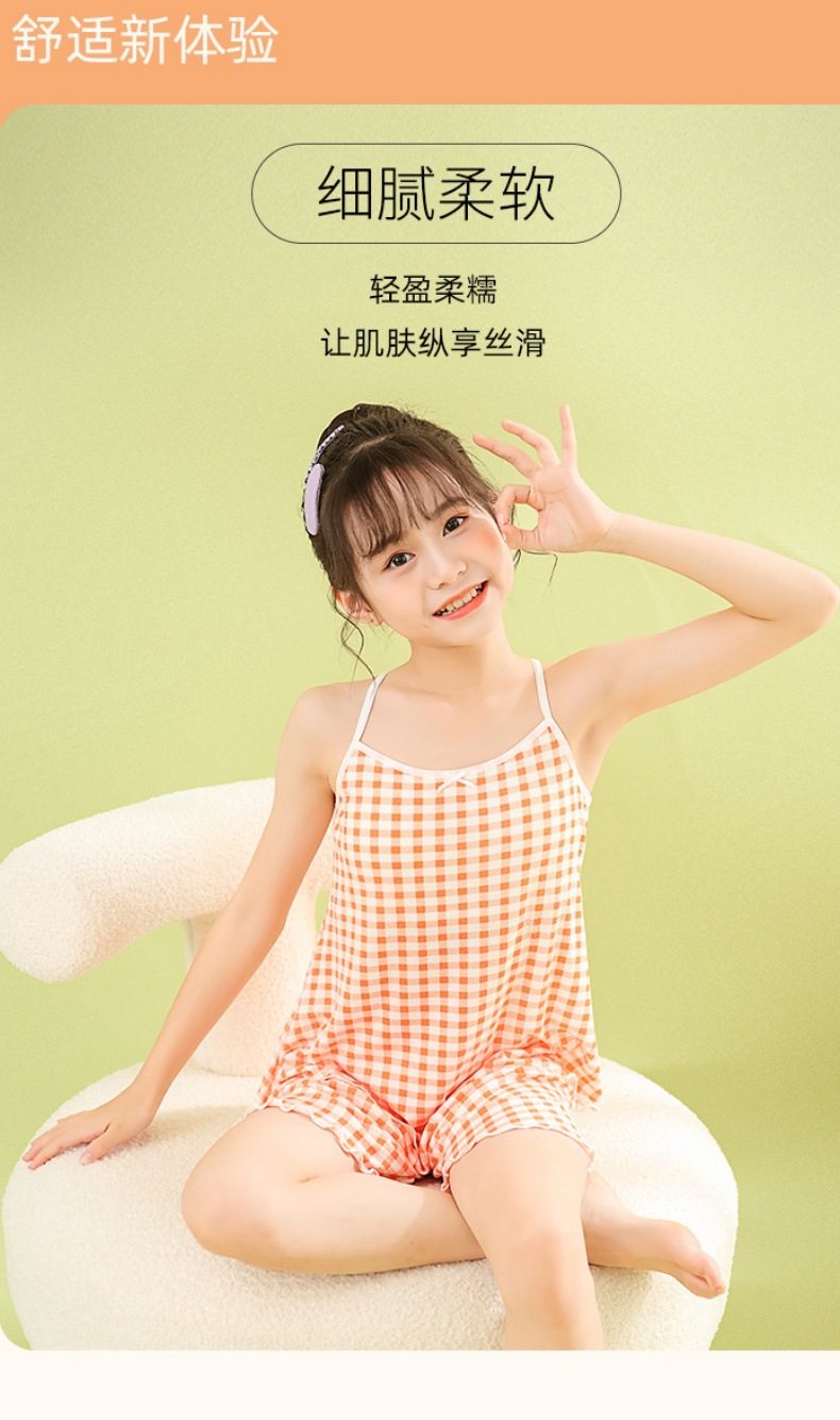 여아 잠옷 투피스 세트 여름 2025 여름 여아 캐주얼웨어 세트 브라 프리 모달 얇은 스타일스토어 가기
