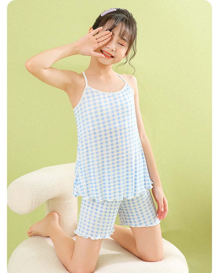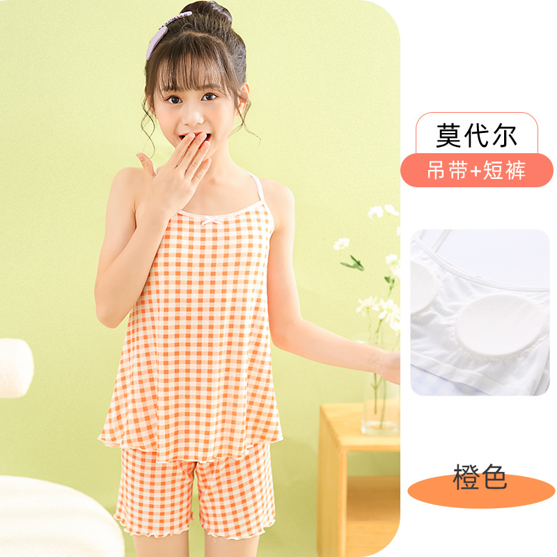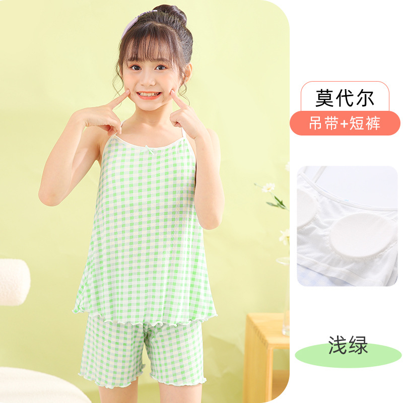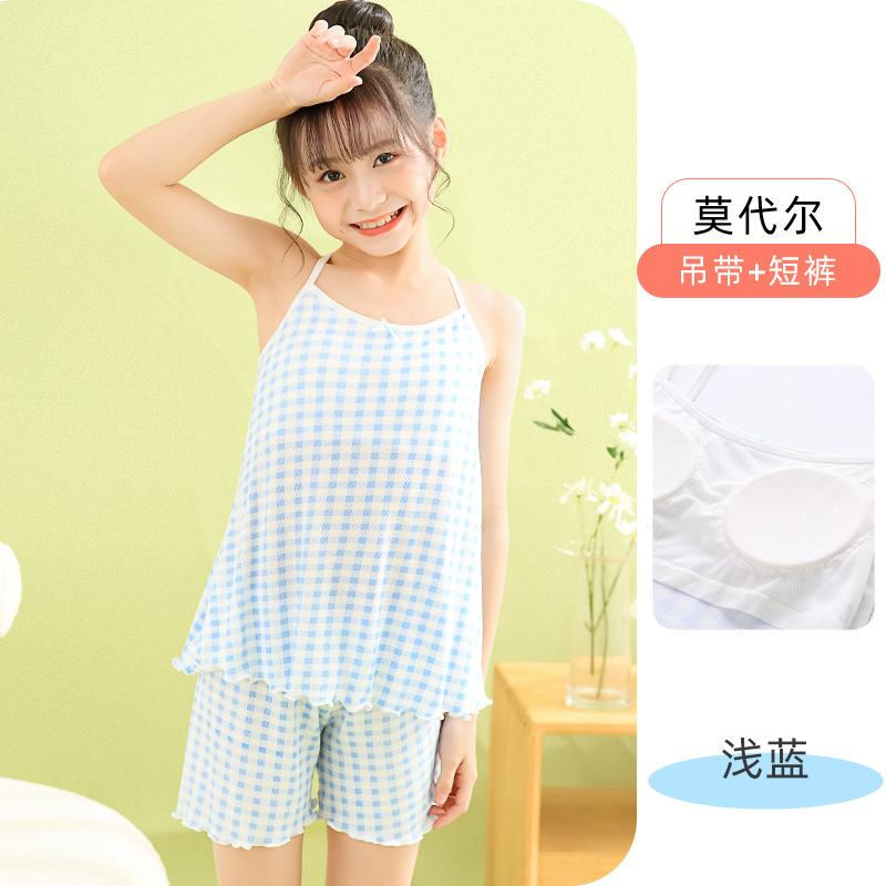 여아 잠옷 투피스 세트 여름 2025 여름 여아 캐주얼웨어 세트 브라 프리 모달 얇은 스타일